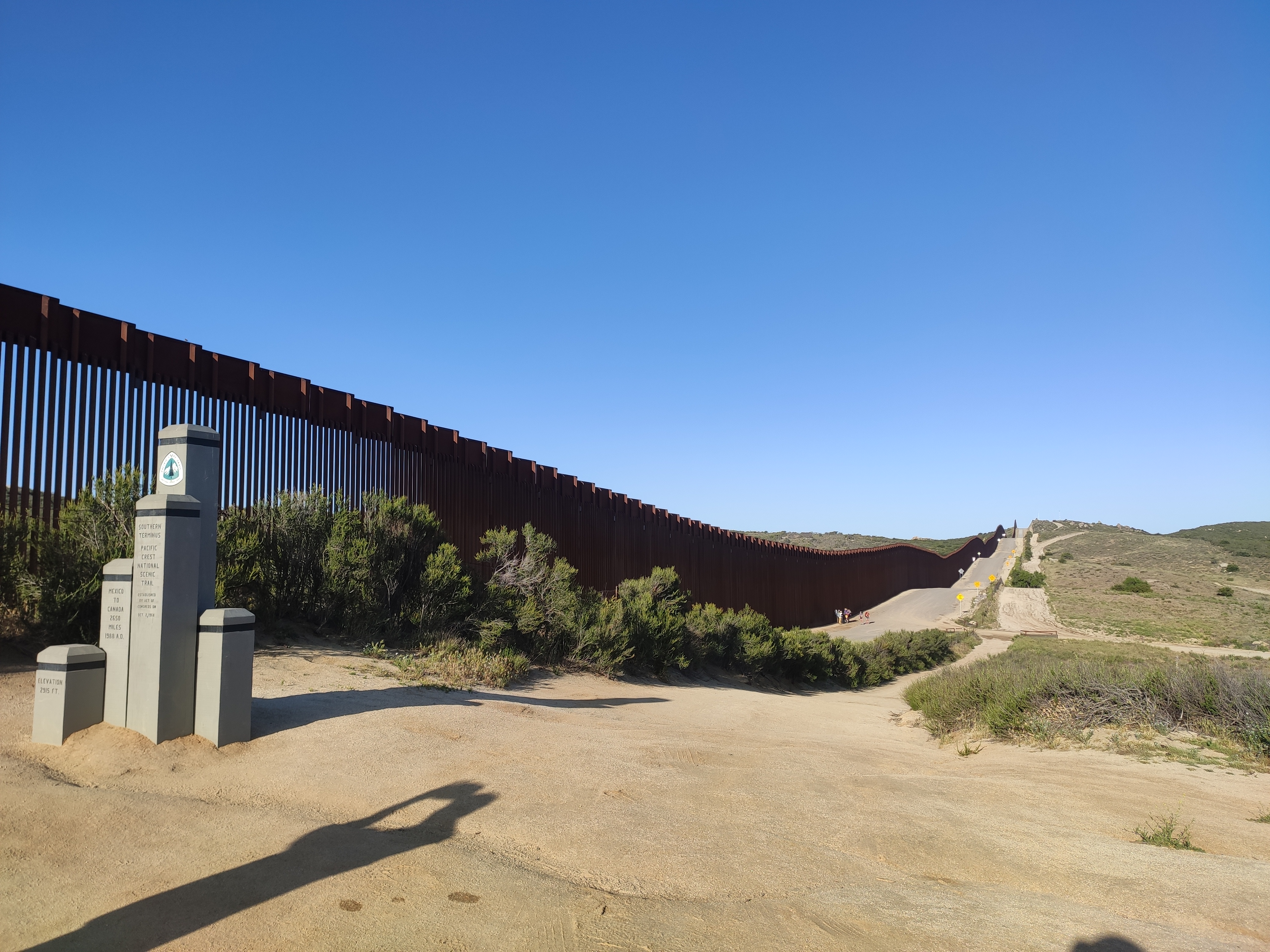We zaten met nog 2 anderen in de auto van een vrijwilliger die de PCT zelf ook had gedaan in 2012. Zijn verhalen gaven mij nog meer goesting dan ik al had. Van ver konden we de grens met Mexico al zien omdat hier sinds een paar jaar een nieuw hoog ‘hek’ staat. We werden een aantal meter afgezet van het startmonument van de PCT waar we wat fotos namen. Even hand door het hek steken zodat we Mexico konden aanraken en dan zat er niets anders op dan te wandelen richting Canada!