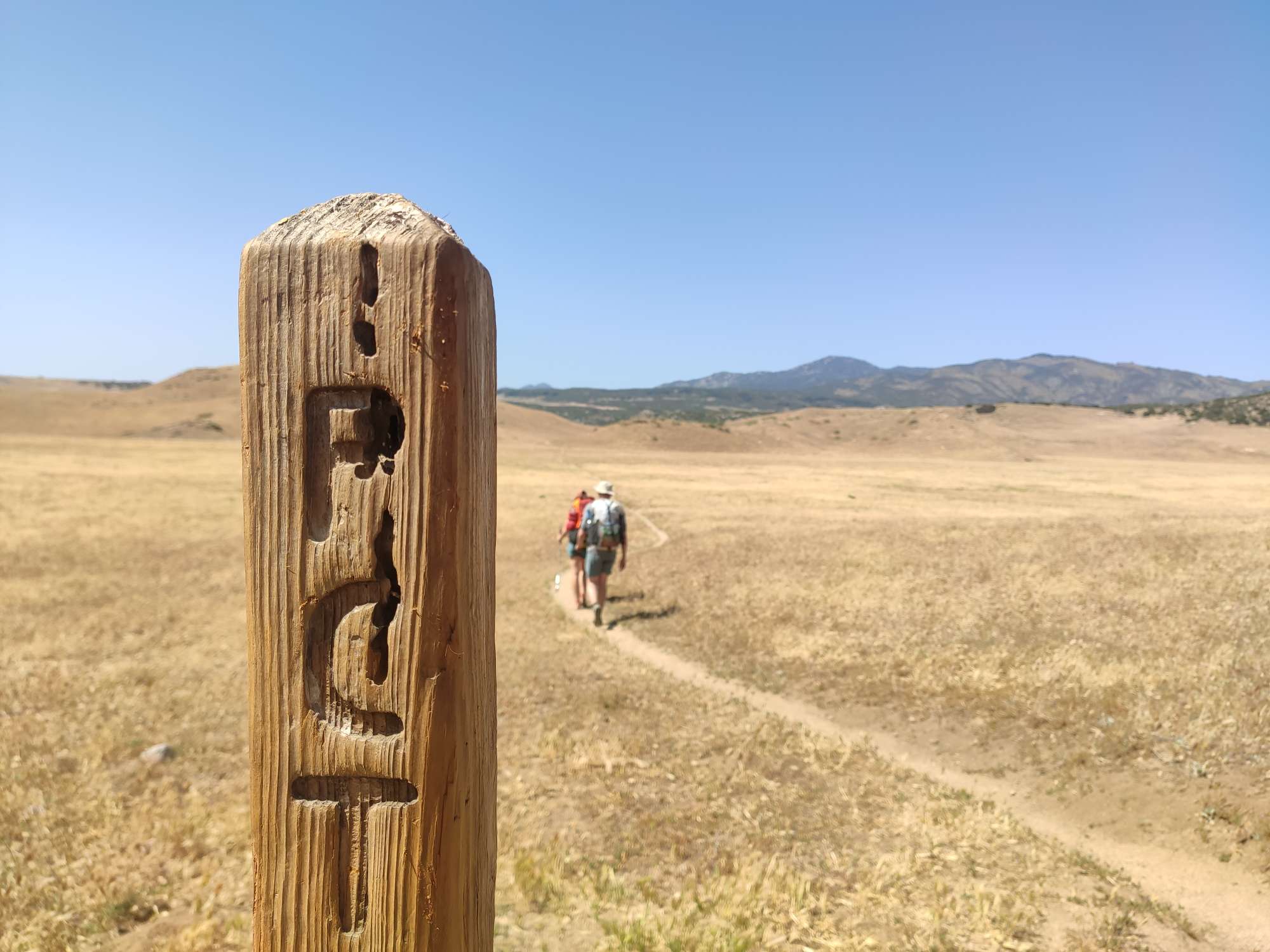 Gisteren zijn we de 100 mijl gepasseerd! Tot nu toe gaat het goed met het stappen en ik vind het zalig. Het is gek in hoeveel verschillende soorten landschappen we al hebben gestapt. Het is overdag ook een stuk warmer aan het worden met geen wolkje aan de lucht. Zondag was het voor de eerste keer een echt stuk woestijn, schaduw was bijna niet te vinden en de zon is fel.