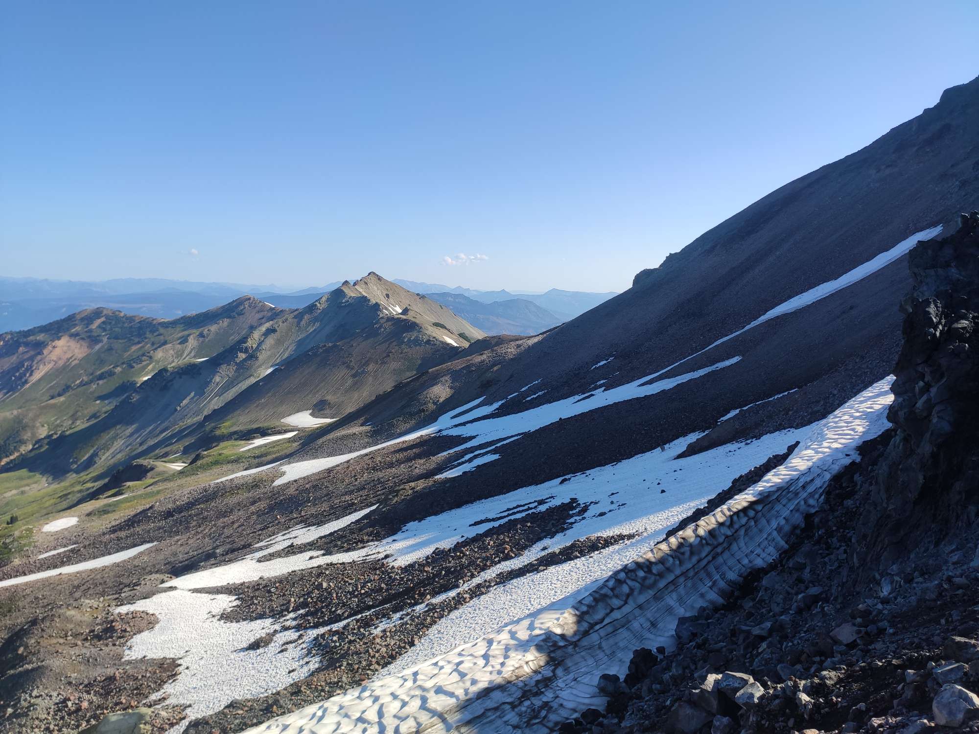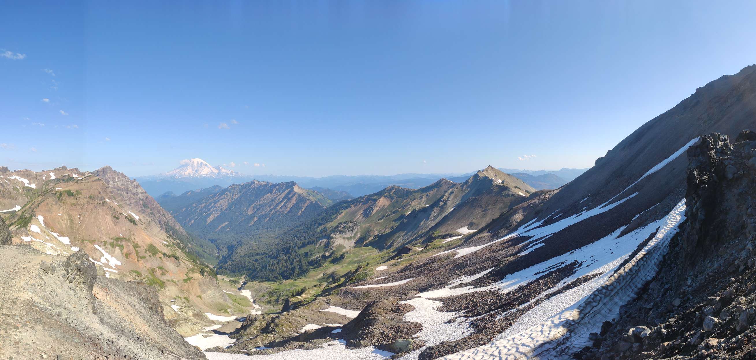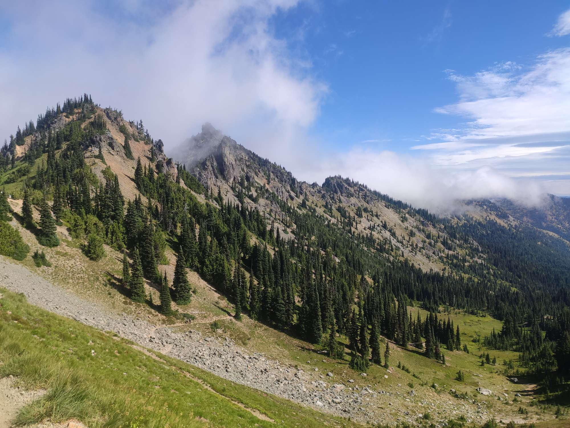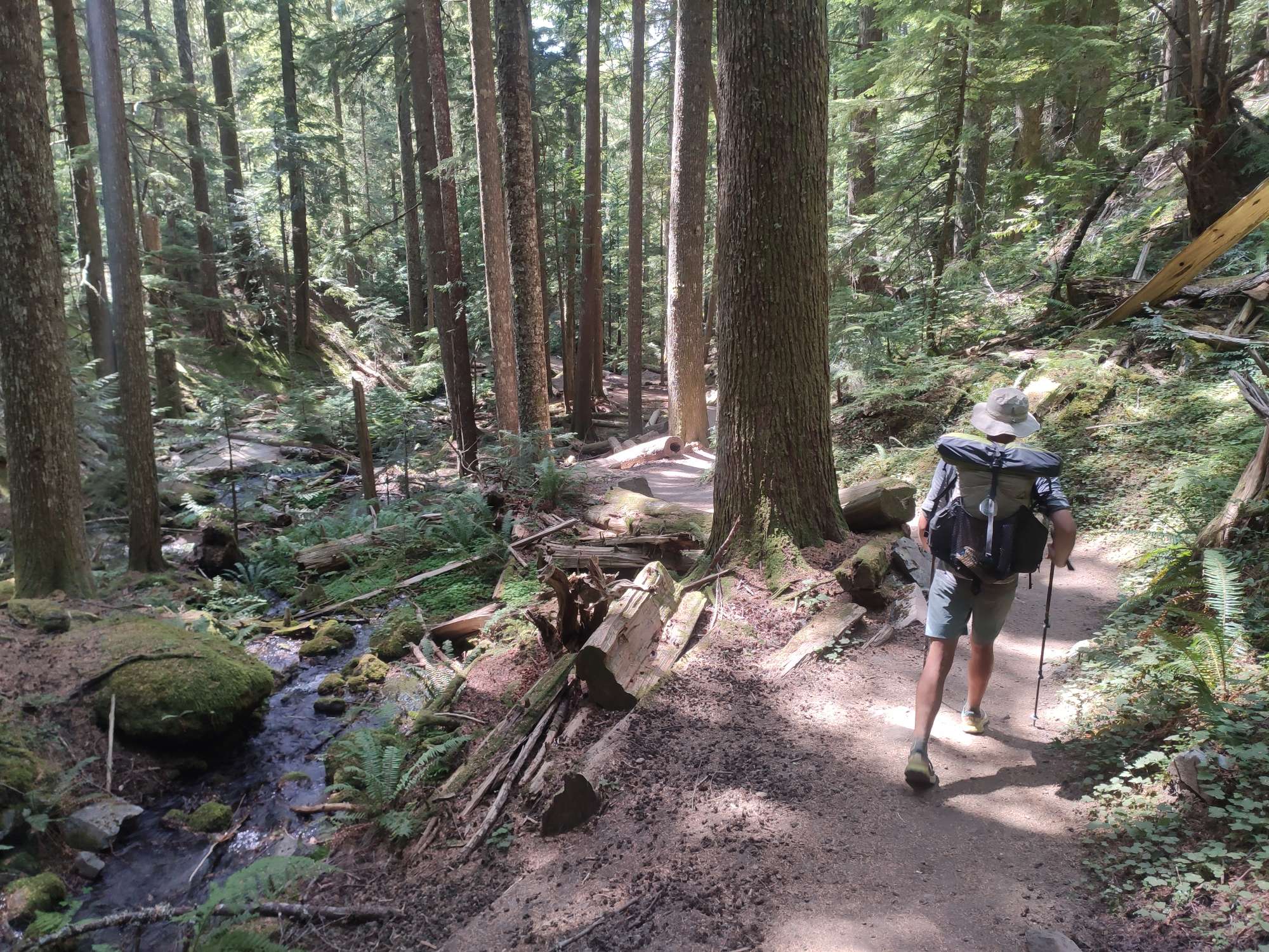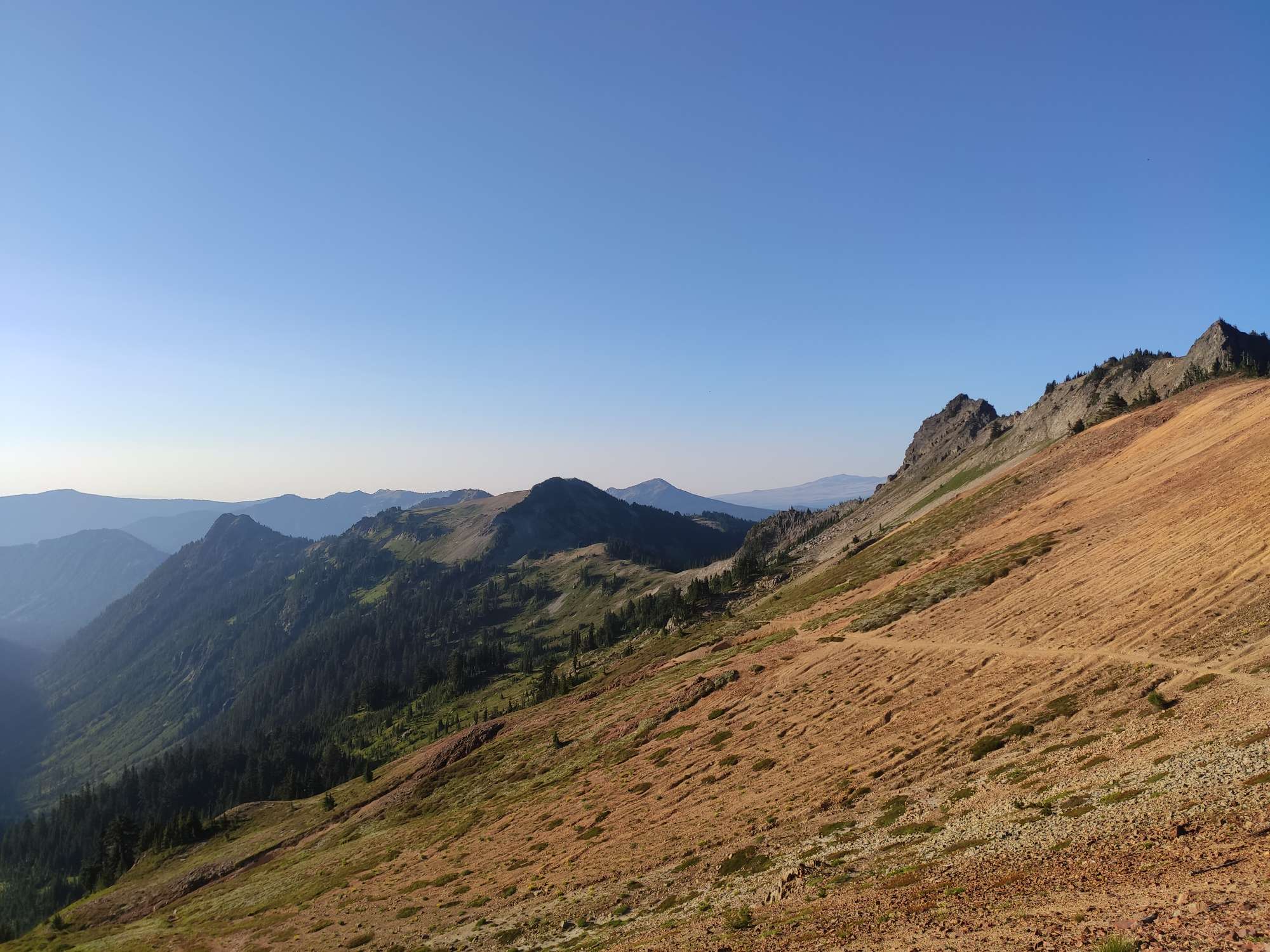 Na twee leuke maar drukke nachten zijn we de brug overgestoken en nu zitten we dus in Washington. De eerste dagen waren gewoon, dichte bossen, goed wandelen maar niets speciaal. Tot een paar dagen geleden. Super indrukwekkende valleiën en bergen, het pad soms op heel nauwe richels. Het doet me soms denken aan de Sierras.