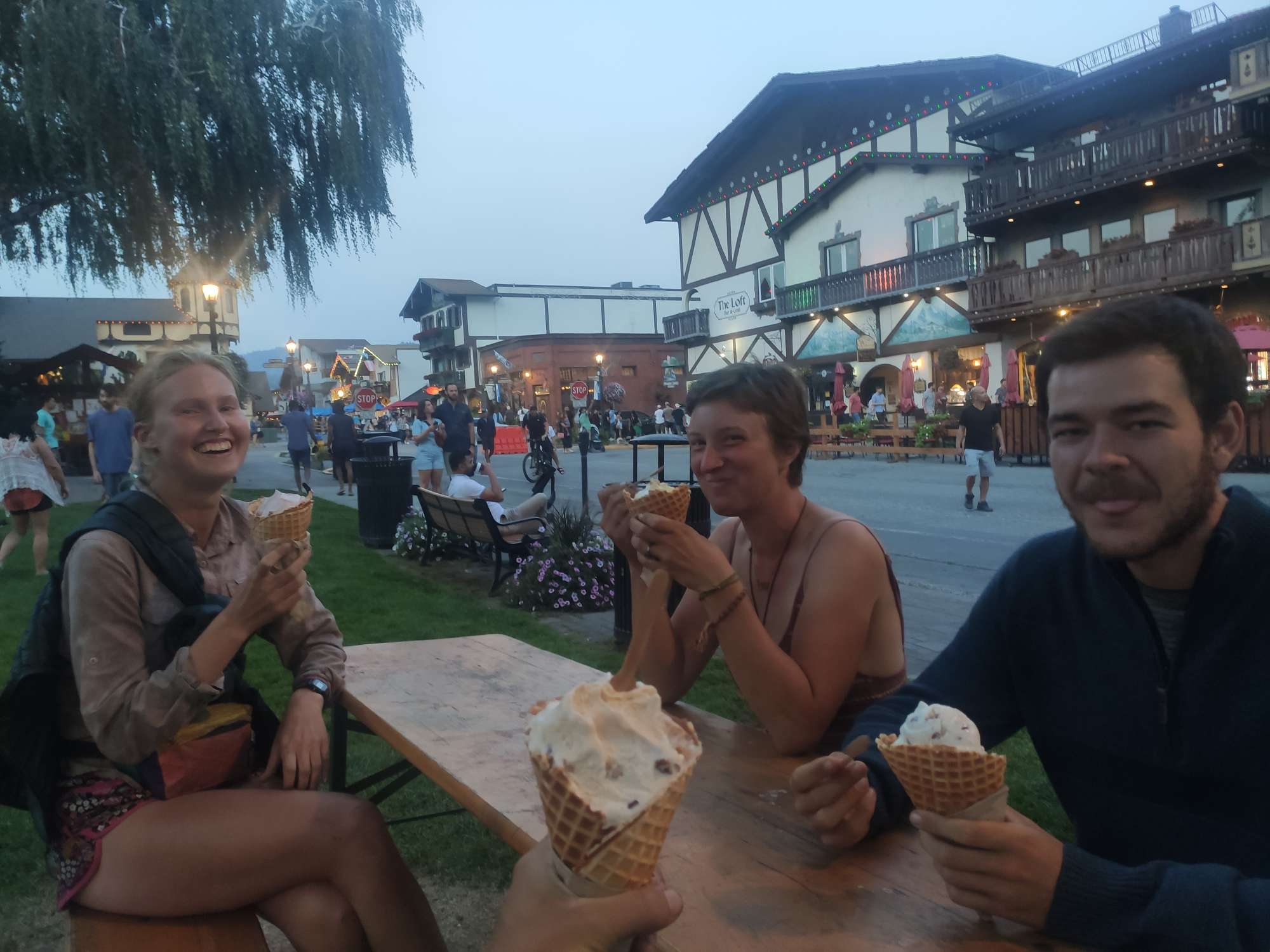 De afgelopen nachten hadden we nog eens een zero day gedaan (zonder wandelen). We verbleven in Leavenworth, een stadje dat een Duits stadje probeert te imiteren. De huizen zijn in de stijl van chalets. Ze hebben hier pretsels, braadworst, weisbier, … In het centrum is er zelfs een bandje in traditionele kledij dat duitse muziek speelt. Zeker heel kitch maar wel grappig om rond te hangen.