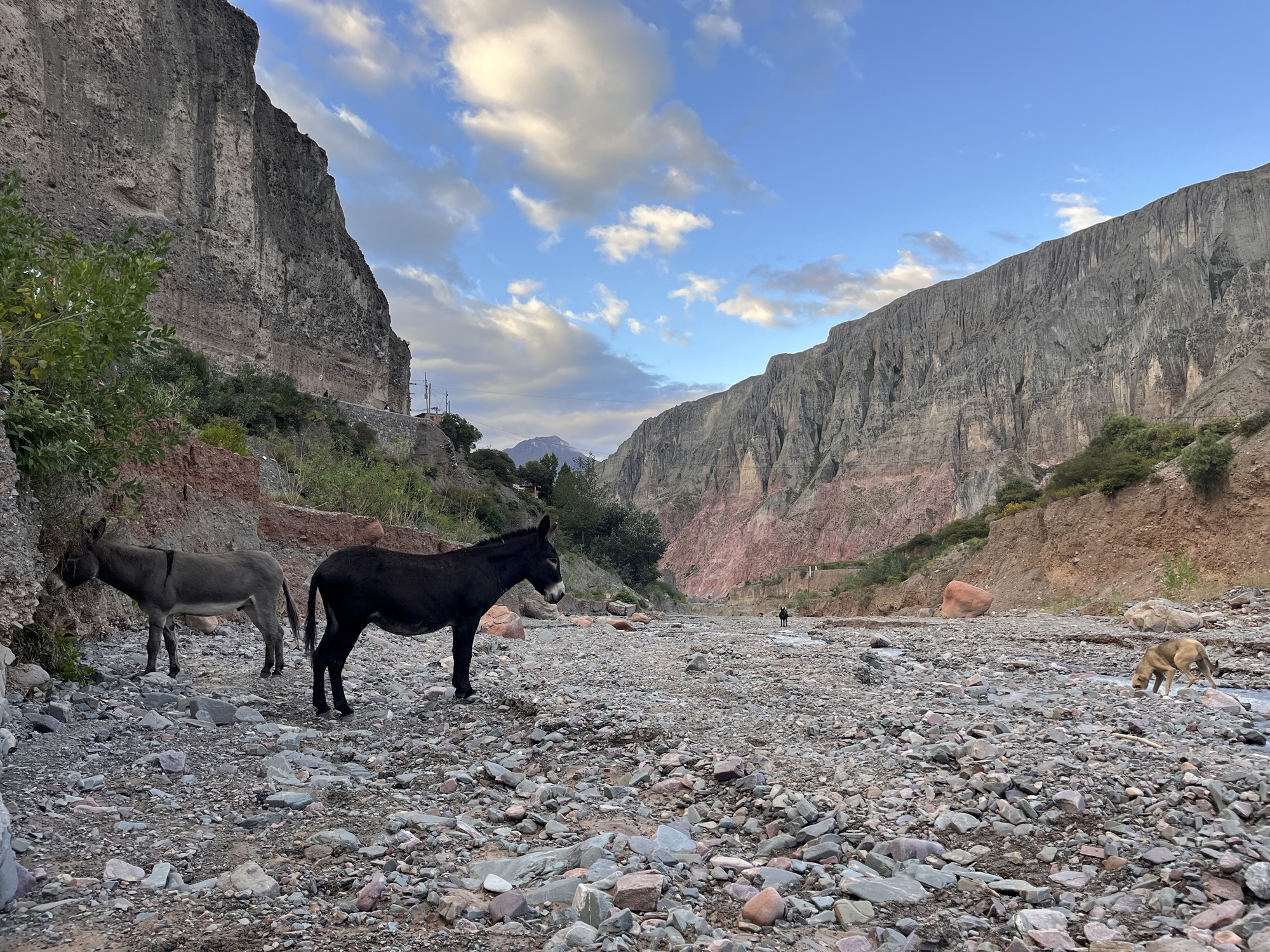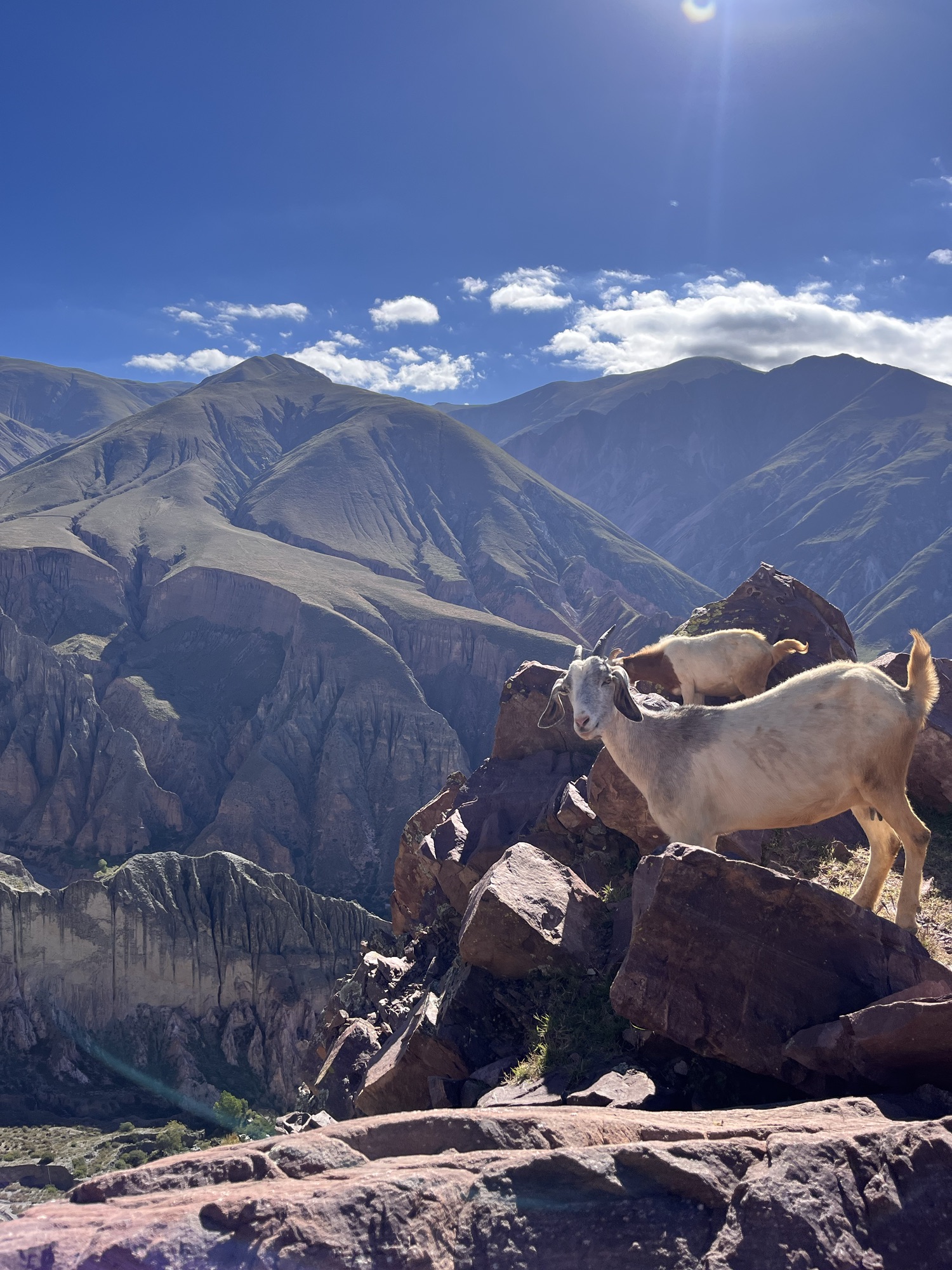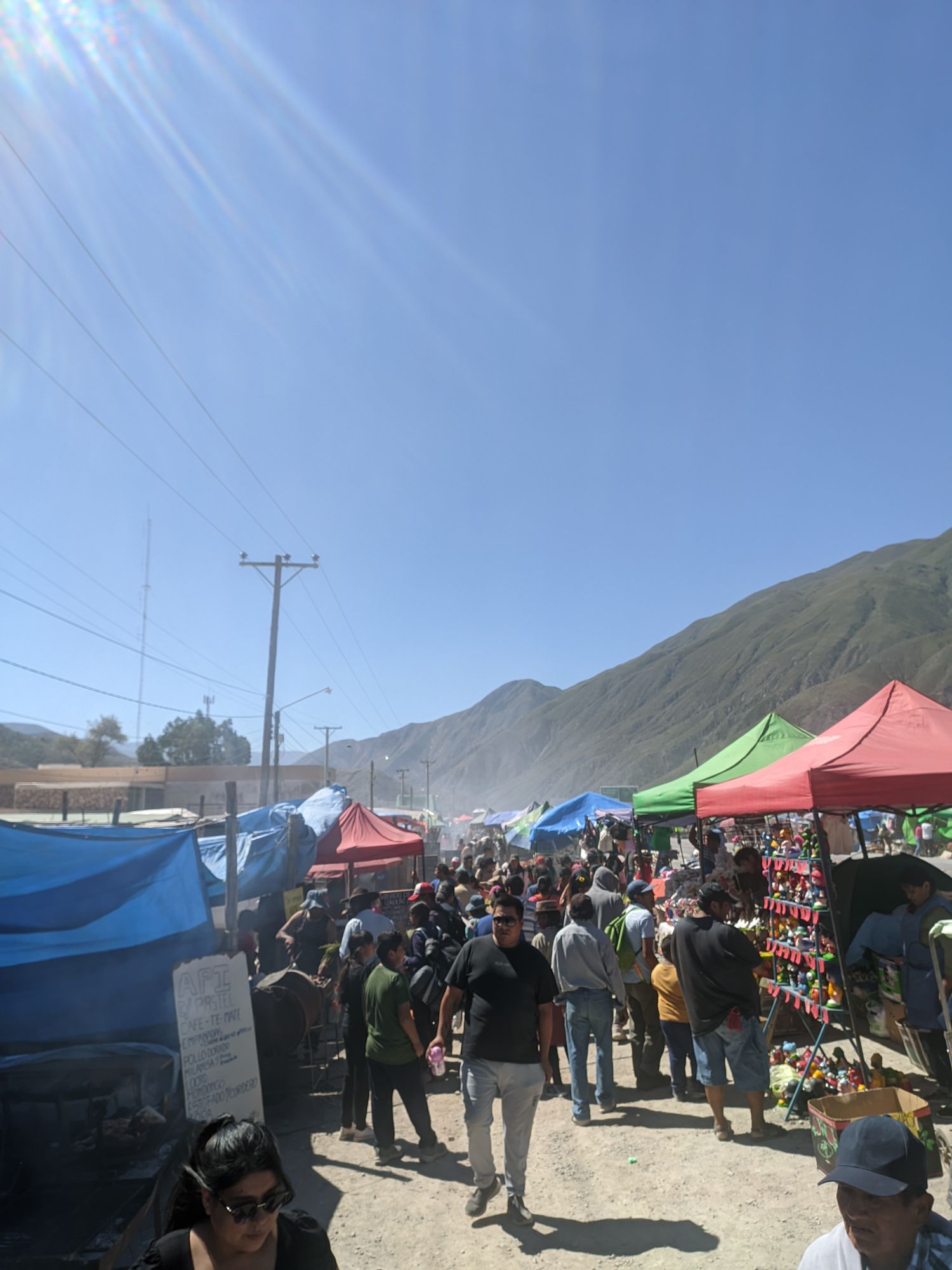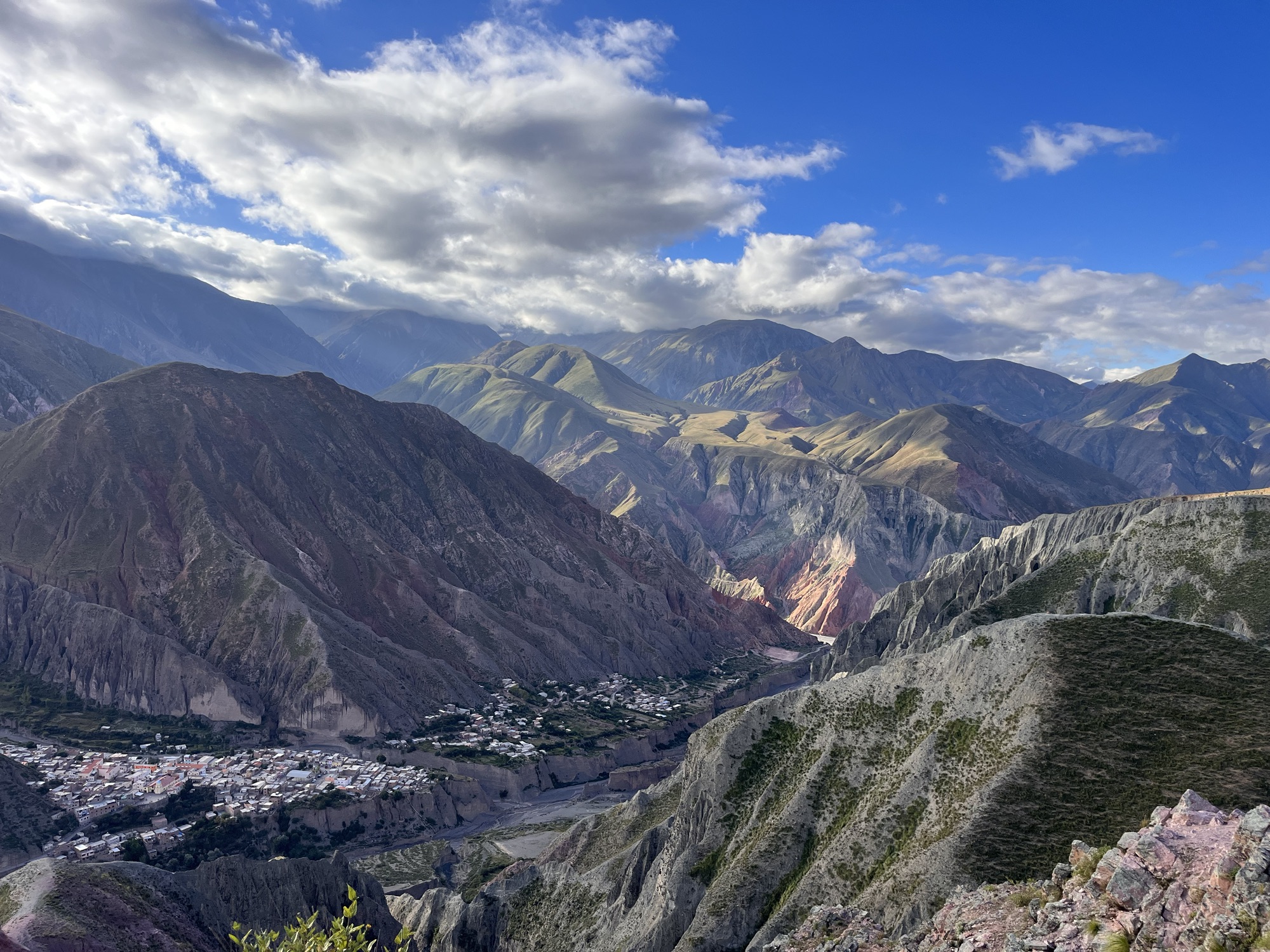 Een beetje verder noord nemen we een bus van 3 uur naar een klein dorpje verstopt tussen de gigantische bergen. De weg ernaartoe is gevaarlijk en in heel slechte staat, iets dat met ons klein autootje niet zou lukken. Ook hier wandelen we naar een uitkijkpunt boven de stad, en de 3000m hoogte maakt ons wel wat sneller buiten adem als normaal. We genieten van het uitzicht met een yerba mate, en worden verrast door een gigantische condor die vlak boven ons hoofd passeerd!