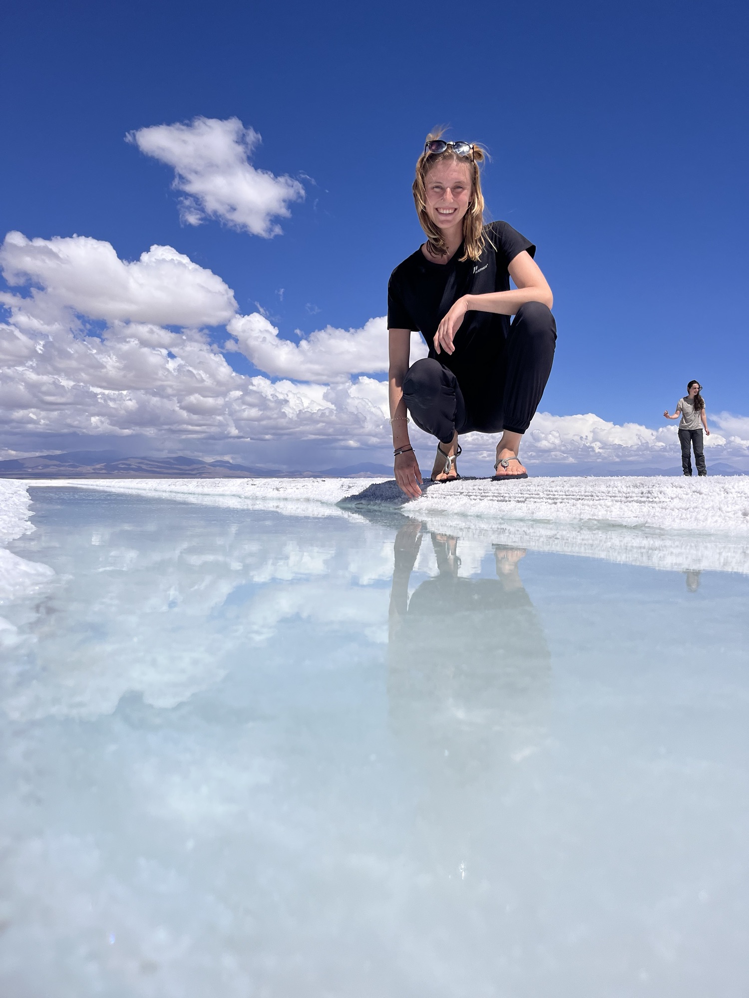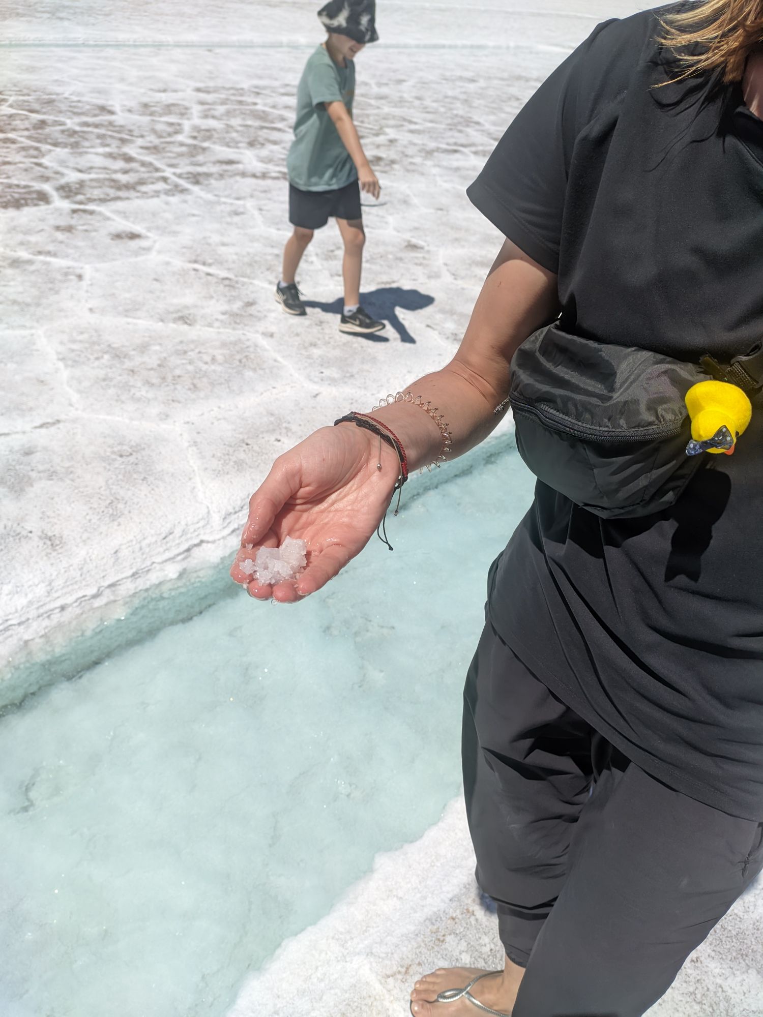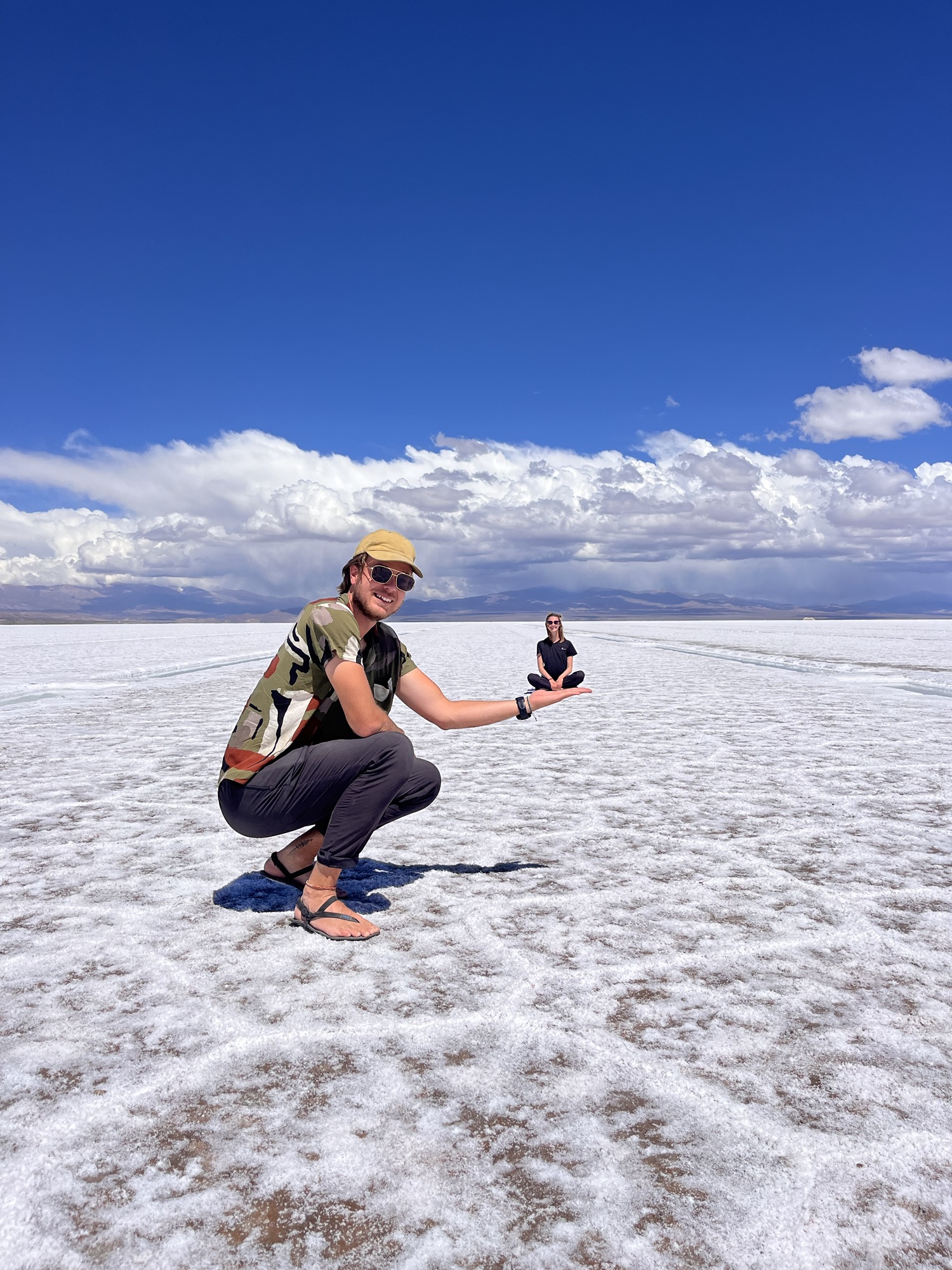 Vandaag was het de langste dag rijden, naar de zoutvlaktes van Argentinië. Normaal is heel deze route over de bergen op asfalt, maar omdat er een brug is ingezakt moet iedereen een omleiding nemen op een onverharde zandige weg. Ook hier was het dus weer traag rijden en de putten ontwijken. Maar de 3u rijden werd weeral beloond met een uniek stukje natuur! Het is een grappig zicht om alle mensen op zo’n grote witte vlakte te zien.