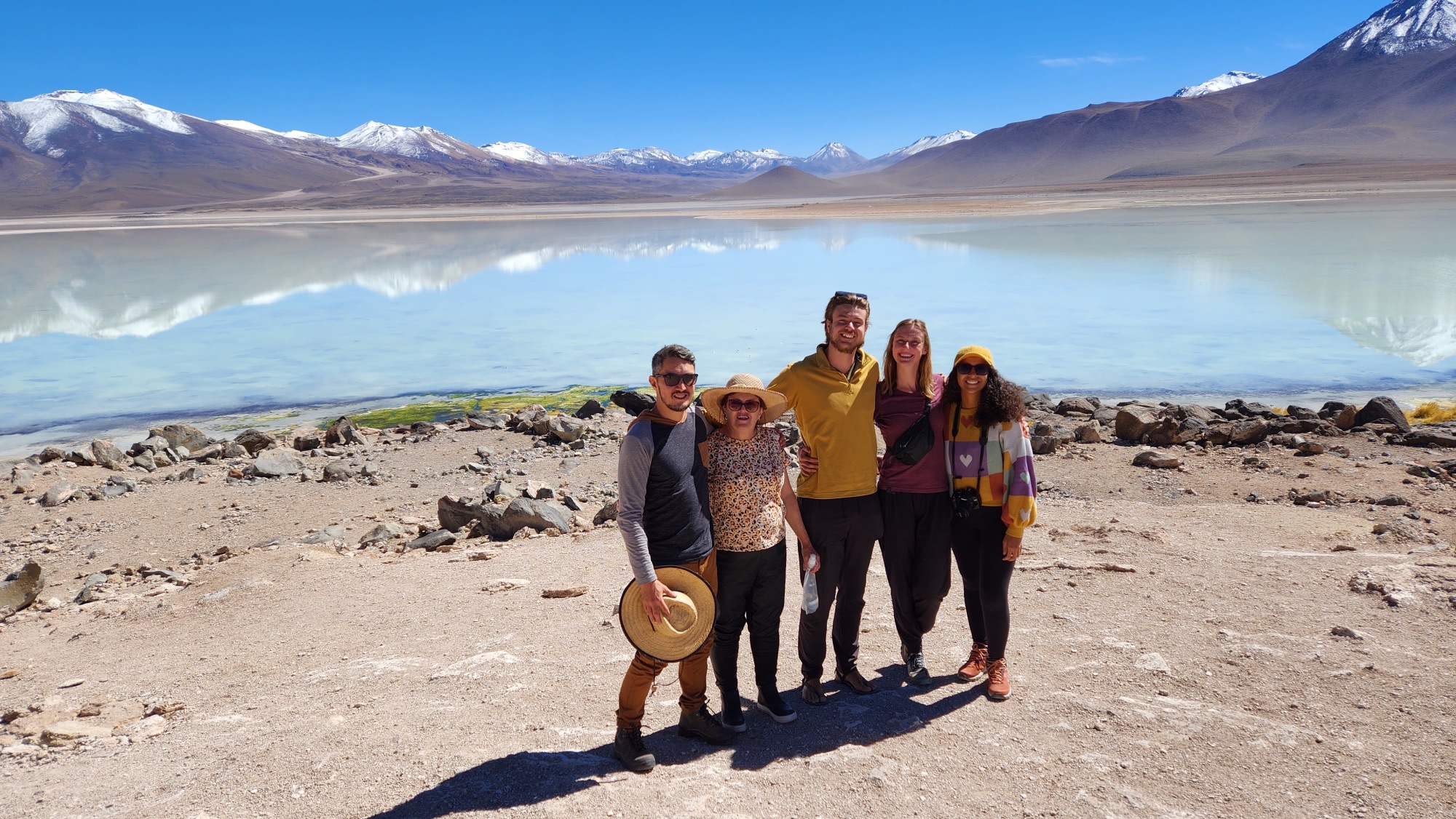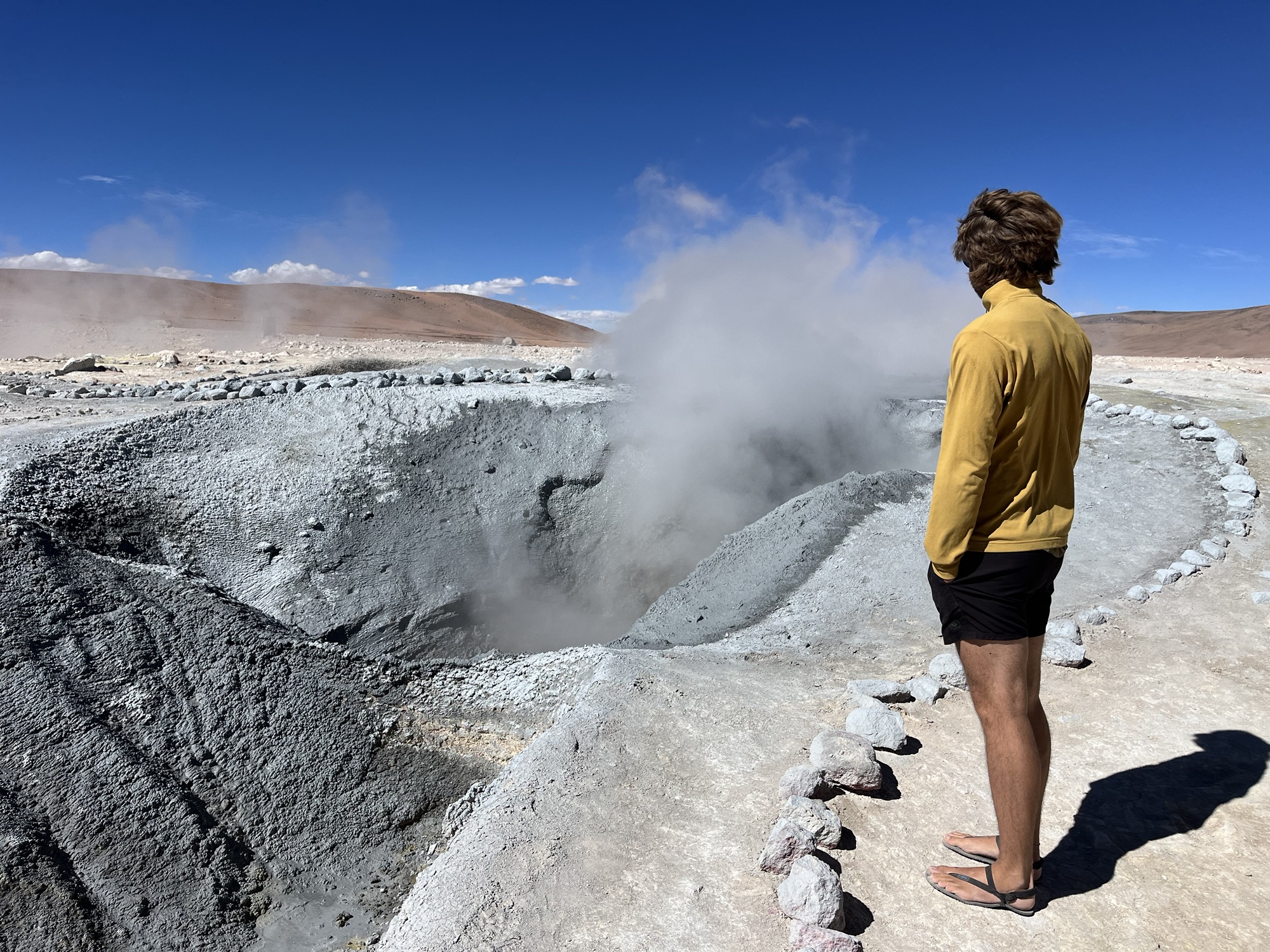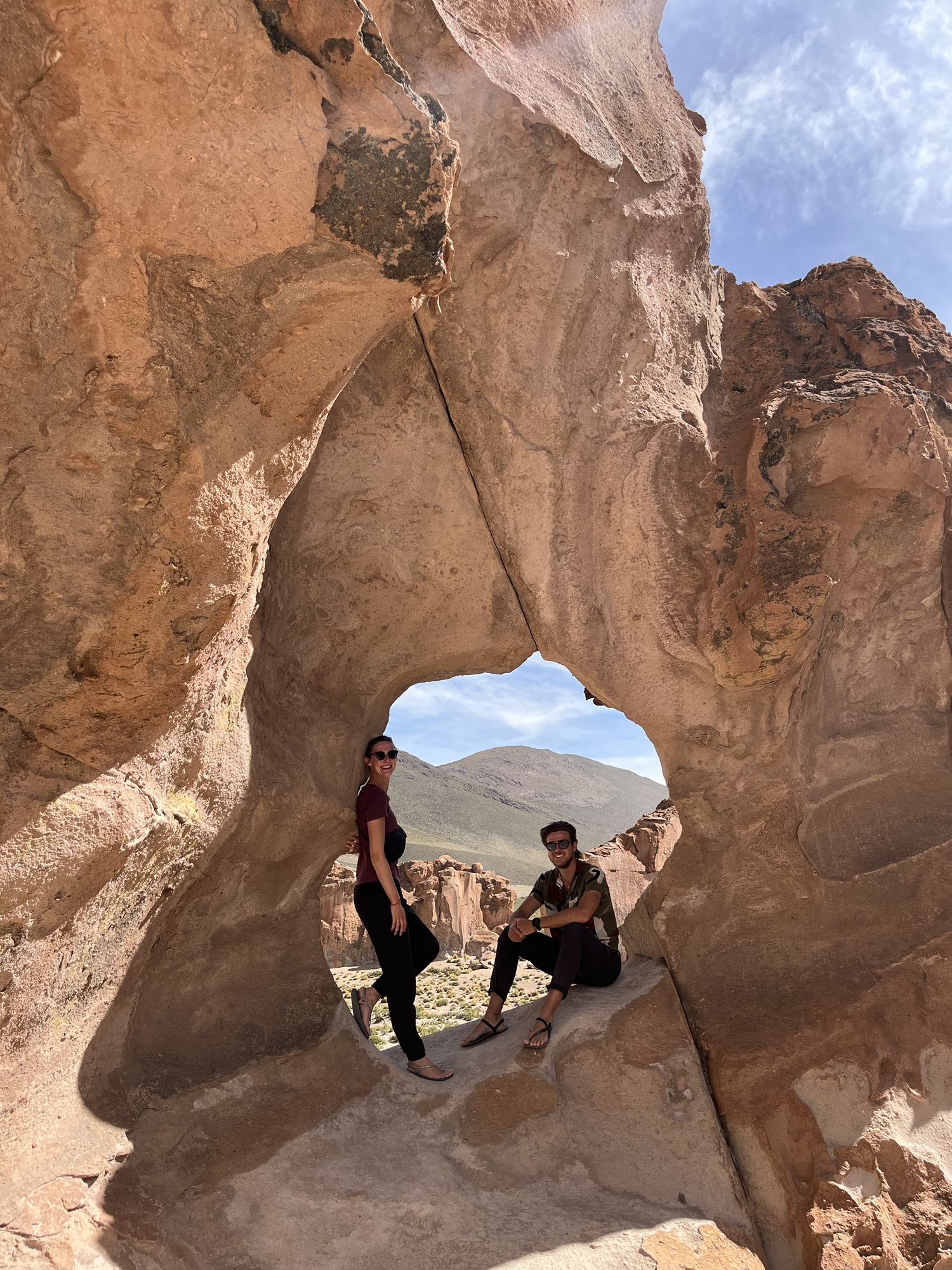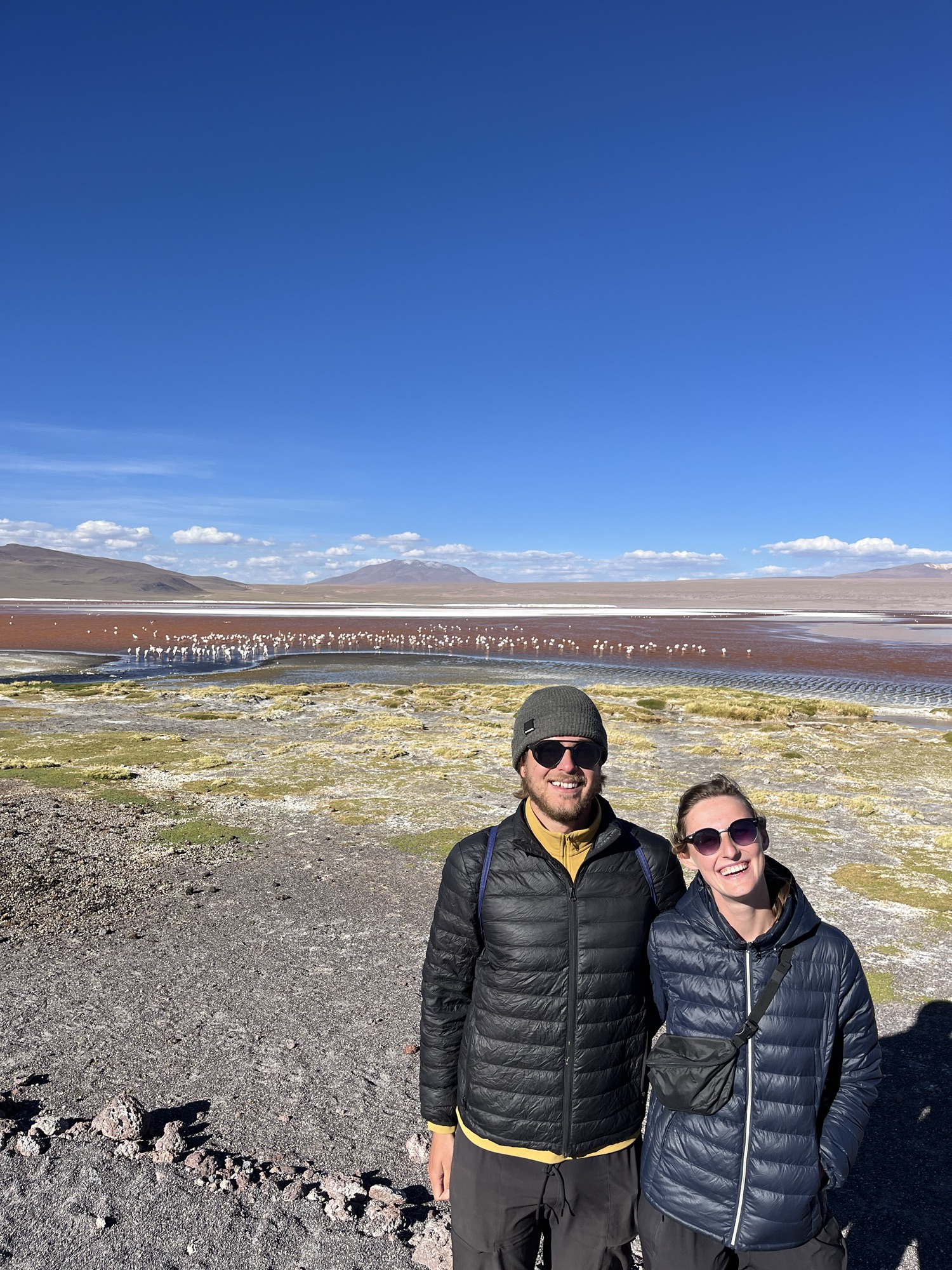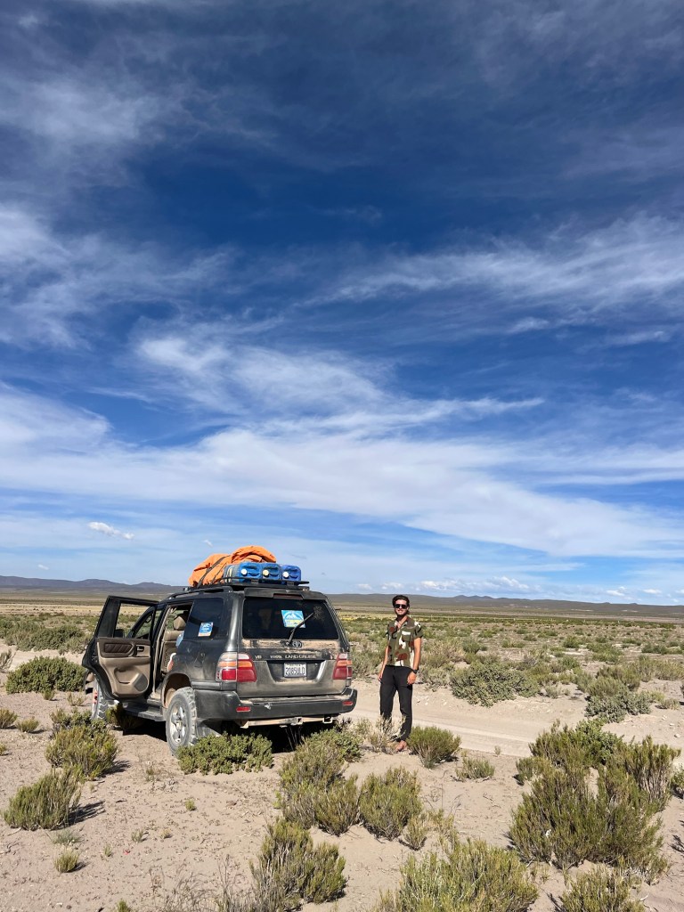 Op de planning stond een 3 daagse door de natuur van het zuiden van Bolivia; op 4500m door woestijnen, rode meren met flamingo’s, warmwaterbronnen, en de grootste zoutvlakte ter wereld. We vertrokken in San Pedro in Chile en werden naar de grens gebracht van Bolivië. Na de immigratie werden we verdeeld over 4X4’s.