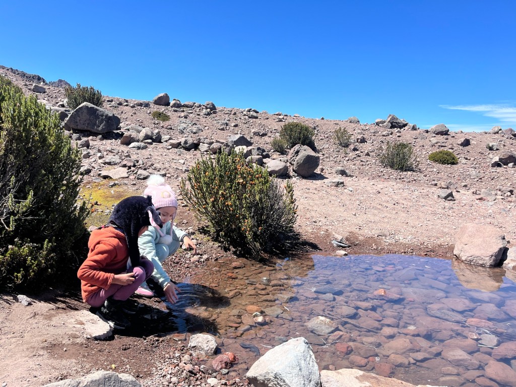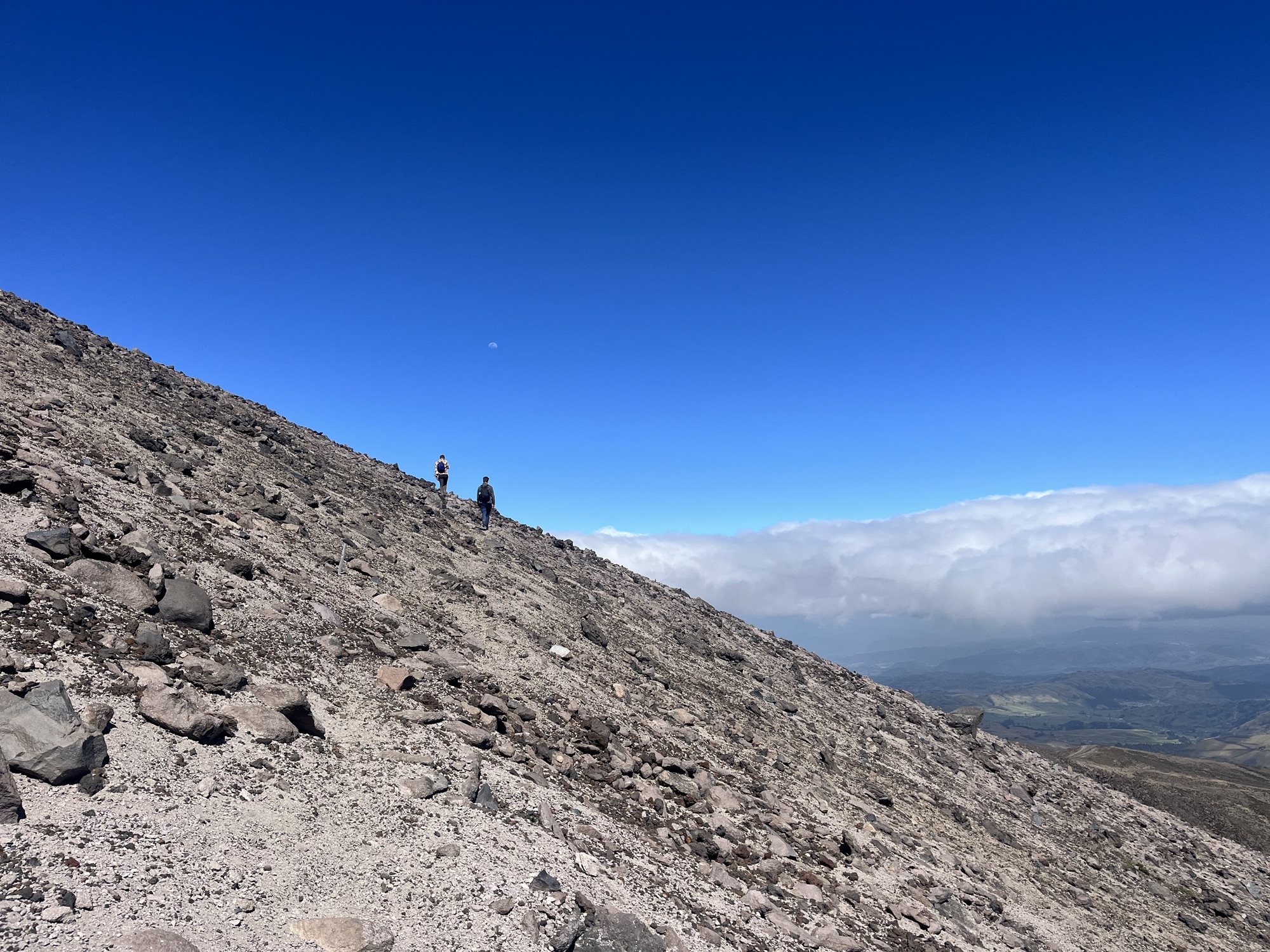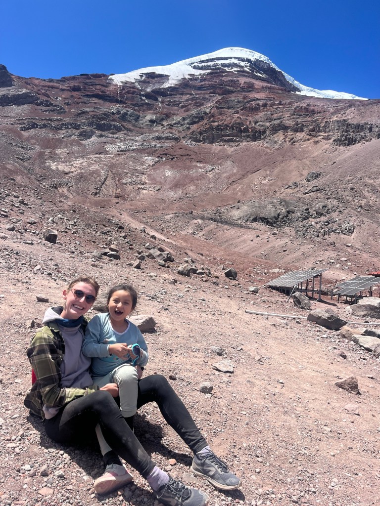 Onderweg naar boven werden we opgepikt door een Ecuadoriaans gezin met een heel sociaal kindje dat direct aan Margo vroeg of ze haar vriendin wou zijn. We wandelden samen naar het hoogste punt, maar erna keerden ze terug naar de auto en wij wandelden verder.