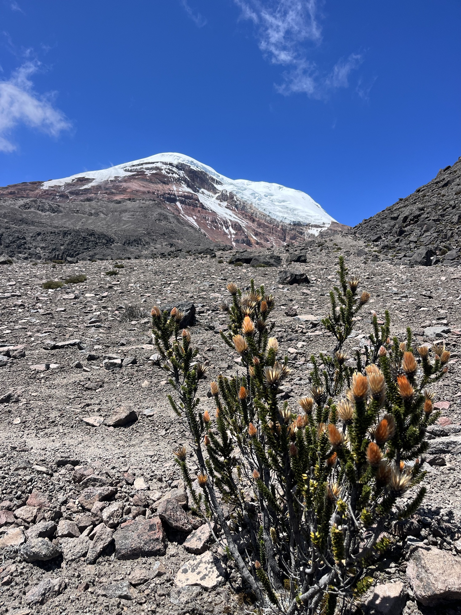 We twijfelden of we naar de top gingen klimmen, maar omdat we in Bolivië al een gelijkaardige klim hadden gedaan besloten we toch niet nog een keer zo hard af te zien. Als alternatief deden we een dagwandeling op Chimborazo die toch ook tot 5100m ging, samen met een belg uit Luik. We hadden geluk want het was een prachtige dag en we konden de besneeuwde bergtop bewonderen zonder wolken.