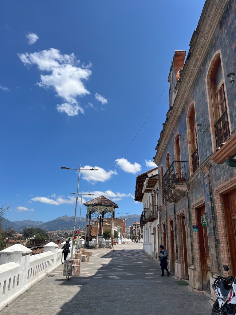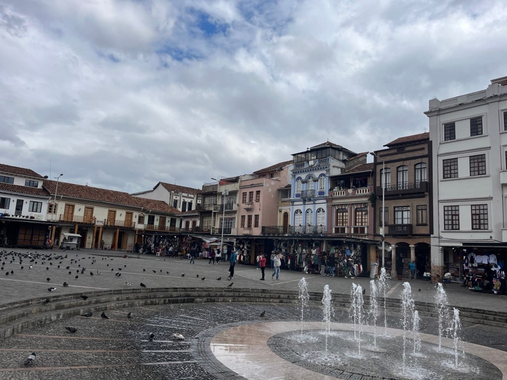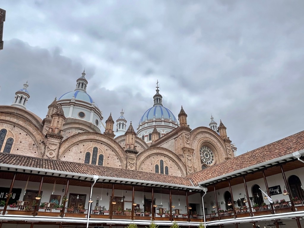 De volgende dag nemen we de bus naar Cuenca. En een irritante gewoonte in Ecuador is dat op elke busrit een luide, geweldadige, spaans gedubte film wordt opgezet. Dus een beetje rust zit er niet in. Gelukkig wel in Cuenca, want we hadden nood aan wat relaxen. We hadden al opgevangen dat Cuenca gezellig is, met zijn mooie gebouwen en lekkere gastronomie.