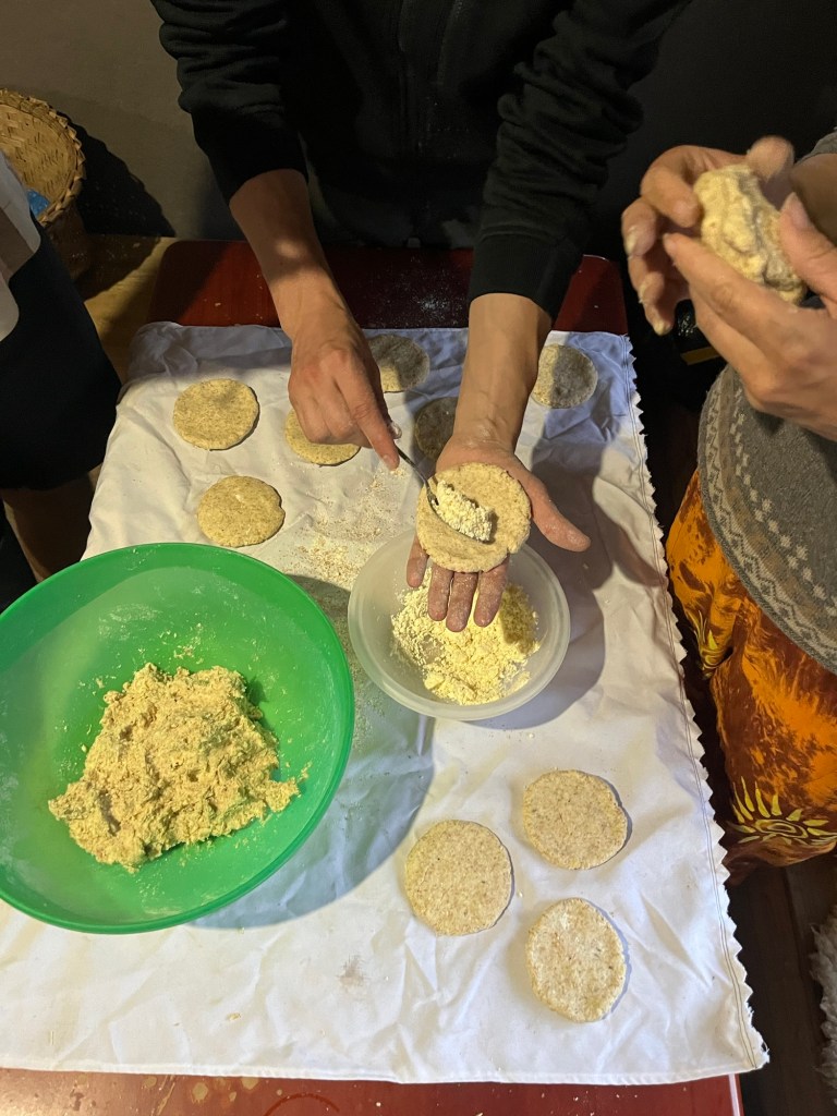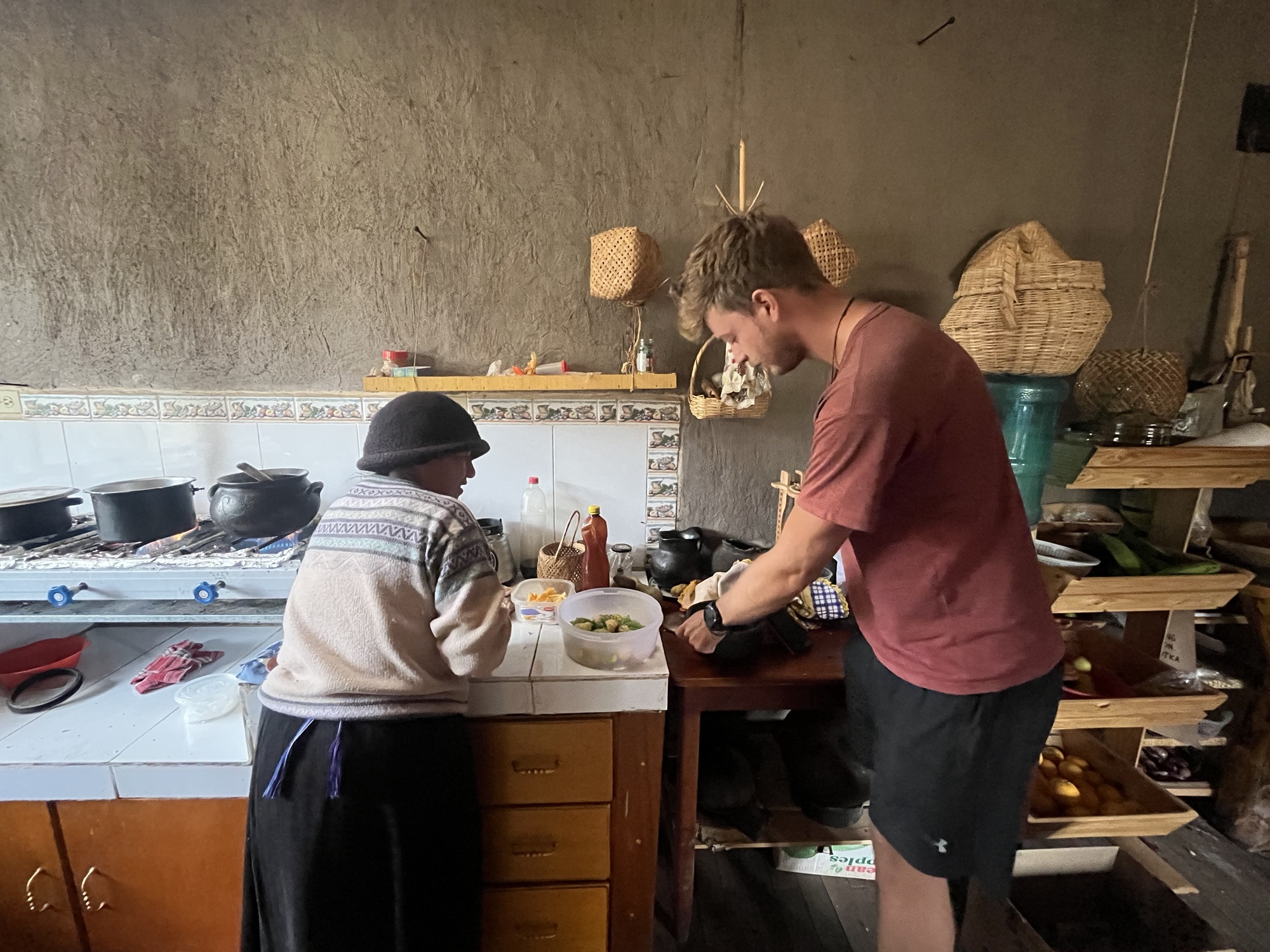De komende twee dagen laat Rosa ons het dorpje zien en gaan we samen de varkens voederen. Er verbleef ook toevallig een koppel uit Nederland in de homestay. Rosa vroeg wat we graag hadden bij ons avondeten: kip of cuy. Wij hadden niet per sé behoefte aan nog eens cavia te eten, maar de jongen uit Nederland had dit nog niet geprobeerd dus was de keuze toch nog gemaakt voor cuy. We dachten dat het ook wel interessant zou zijn om te zien hoe Rosa de cuy ging bereiden. Toen ze terug kwam uit de tuin en ze een levende lieve schattige cavia bij had moesten we toch even slikken. Vervolgens moesten we aanzien hoe ze het beestje dood deed met haar blote handen. We zullen de details besparen maar het ging jammer goenoeg niet zo vlot als we hoopten. Dit was ECHT de laatste keer dat we cavia eten… We hebben hem gebraden op een stok boven een vuurtje.