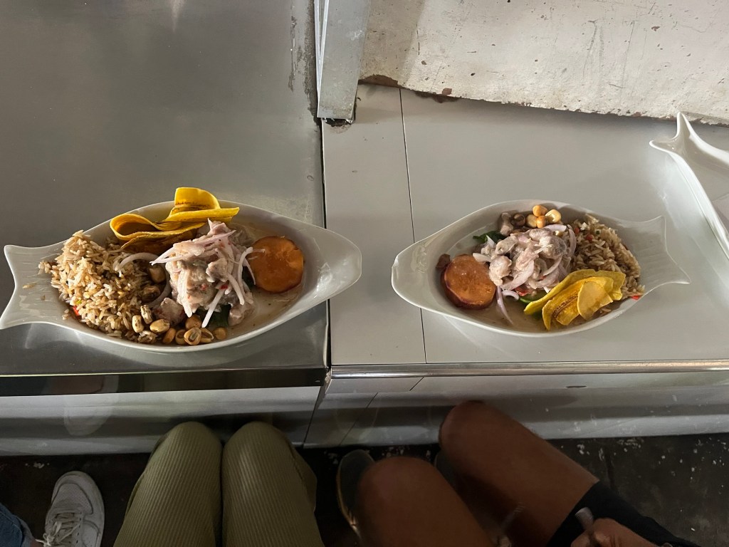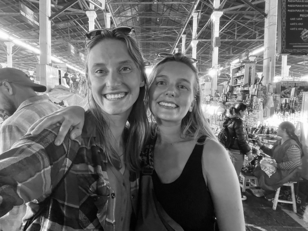 Op de markt werd ik op de schouder getikt door Justine, een vriendin van de universiteit! Toevallig tegengekomen! De eerste keer in 8 maanden dat we iemand terugzien van thuis, een hele leuke verrassing. Ze herkende me aan mijn hemd van de foto’s op Instagram. 😂 Begrijpelijk, want ik draag dat al 4 maanden. Niet veel variatie in de kledingkast hier.