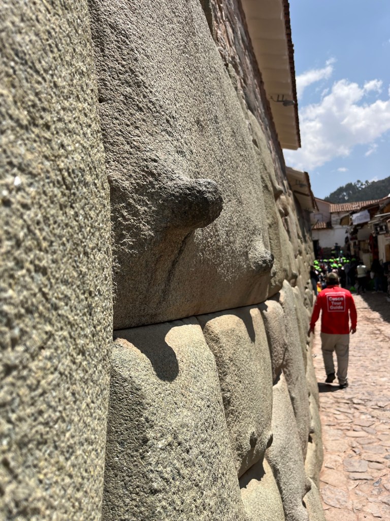 Het centrum bestaat dus uit een onderste laag van Inca-muren. Deze zijn zo zorgvuldig gebouwd dat ze zo stevig zijn dat ze vele aardbevingen konden doorstaan. De Inca’s bijtelden enorme stenen uit rotsen zonder metalen tools! Enkel met gebruik van stenen gereedschap. Zo werkten elke blok zo zorgvuldig af dat deze perfect tussen de blokken rondom past. Je zult nergens een spleetje vinden waar je een papier tussen krijgt. De bouwsels passen als een puzzel in elkaar, zonder cement ertussen of dergelijke. Bij een aardbeving (wat hier wel eens voorkomt) trillen de blokken en vallen ze vervolgens weer perfect in elkaar.