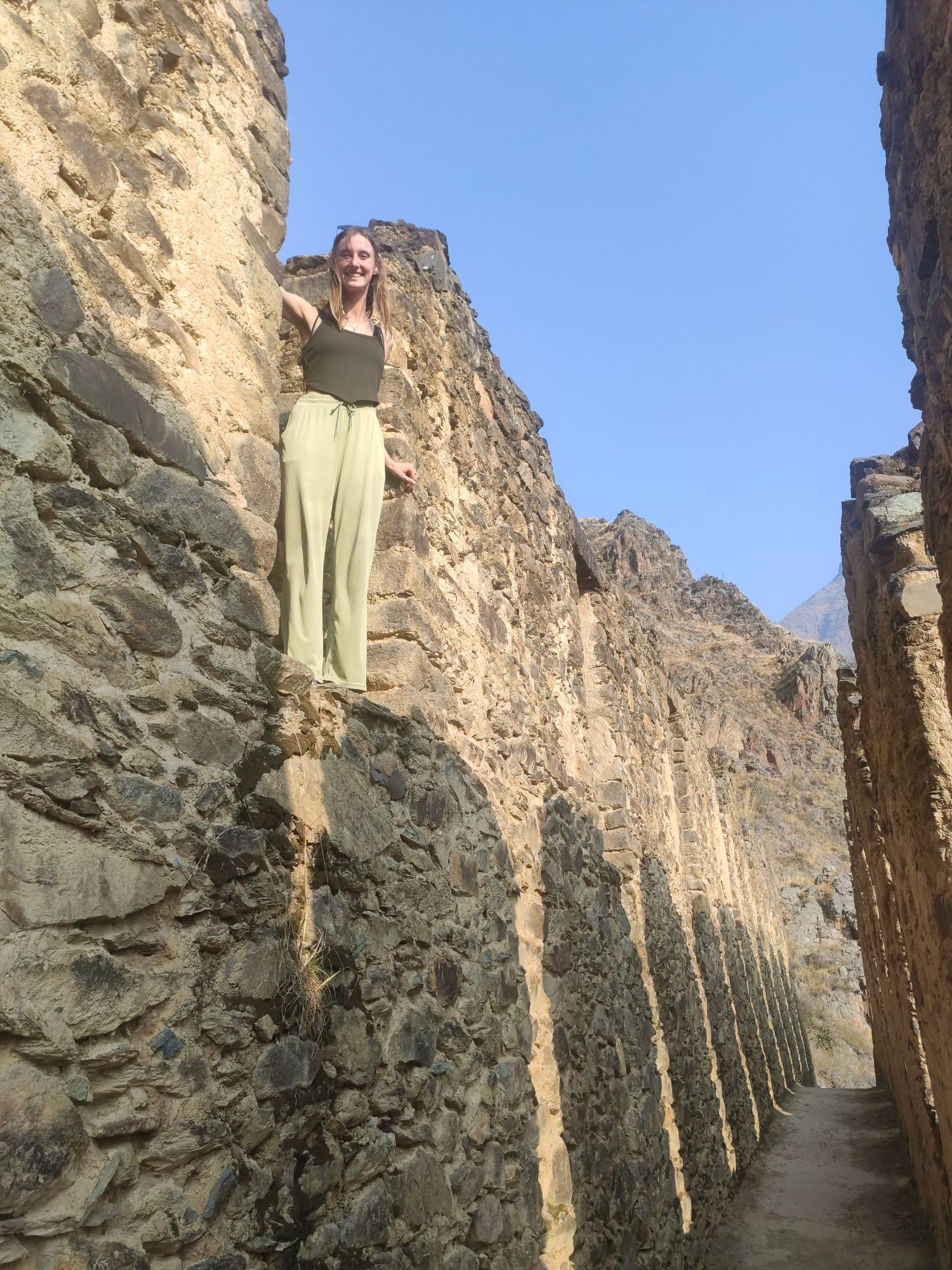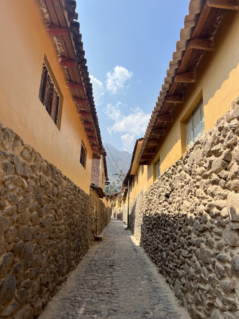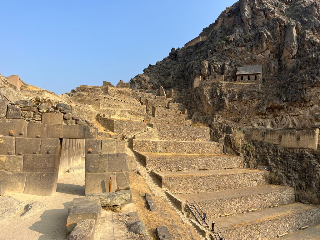 We beginnen in Ollantaytambo. Een super gezellig dorpje met traditioneel geklede inwoners omgeven door ruïnes op de omliggende bergflanken. De ruïnes zijn goed bewaard, want dit was een van de enige plaatsen waar de Inca’s de Spanjaarden overwonnen hebben! Toeristen zijn meer geconcentreerd in dit kleine dorpje omdat vanuit hieruit de trein naar MachuPicchu vertrekt.