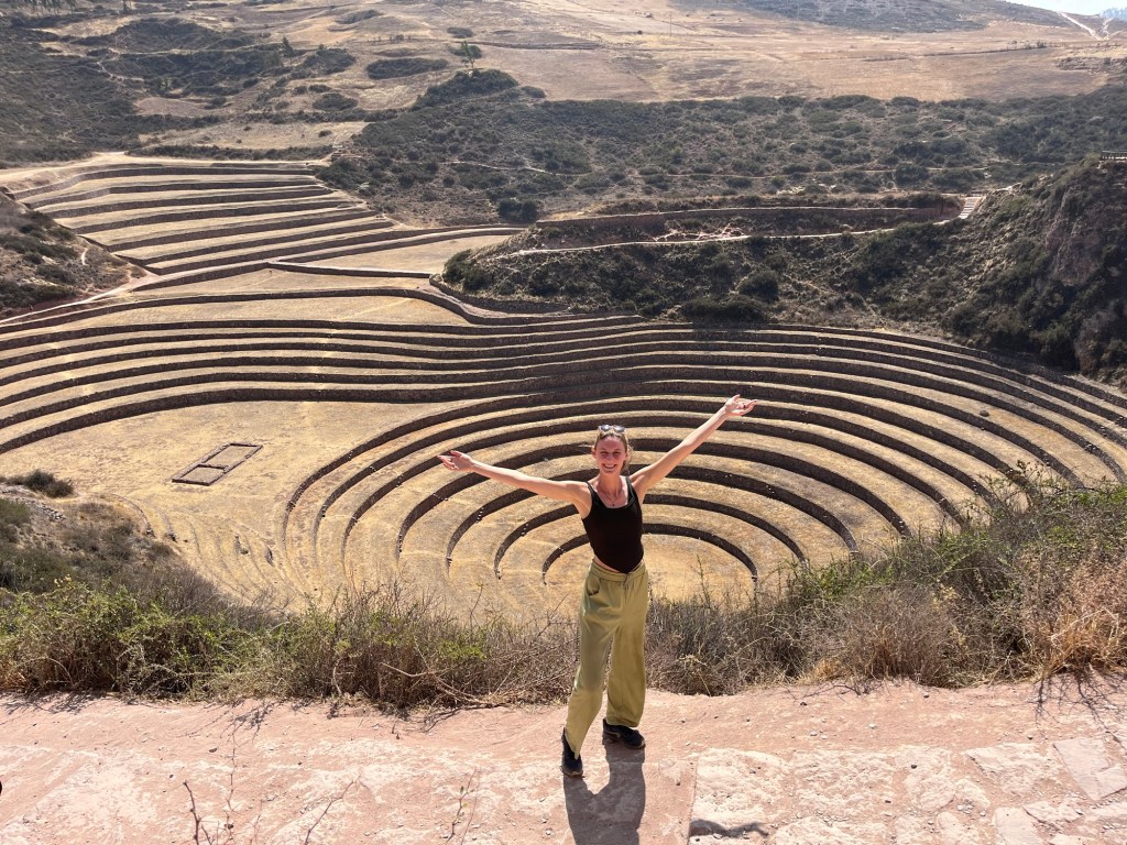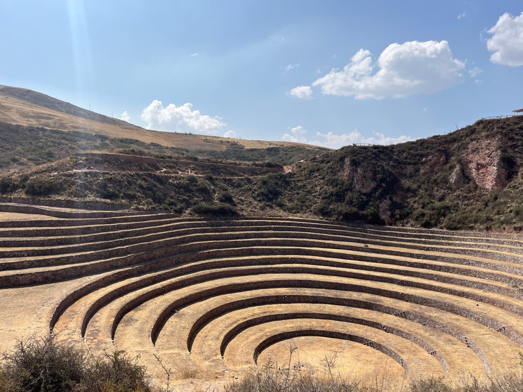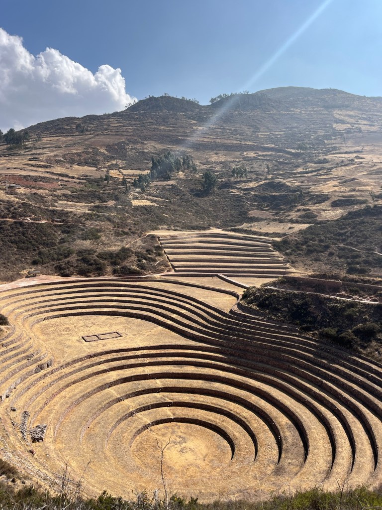 Volgende stop is Moray. Dit is ook echt een van onze favorieten. Het zijn unieke cirkelvormige landbouwterrassen. De intenties van de Inca’s blijven altijd een mysterie omdat ze geen geschreven taal hadden, maar men vermoedt dat de terrassen op deze manier gebouwd zijn om landbouwkundige experimenten uit te voeren. Er ontstaat een microklimaat in deze cirkels met een temperatuursverschil van 15•C tussen het hoogste en het laagste terras. Zo kon men experimenteren met welk gewas het best groeit in welk klimaat. Superinteressant maar ook superfotogeniek!