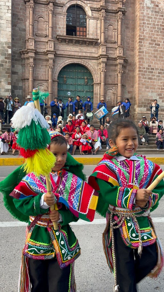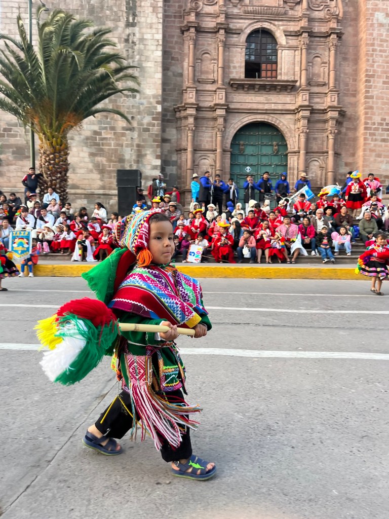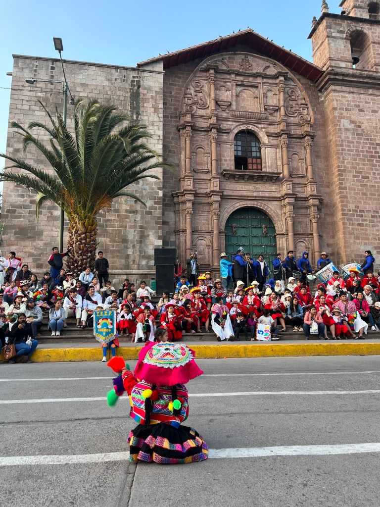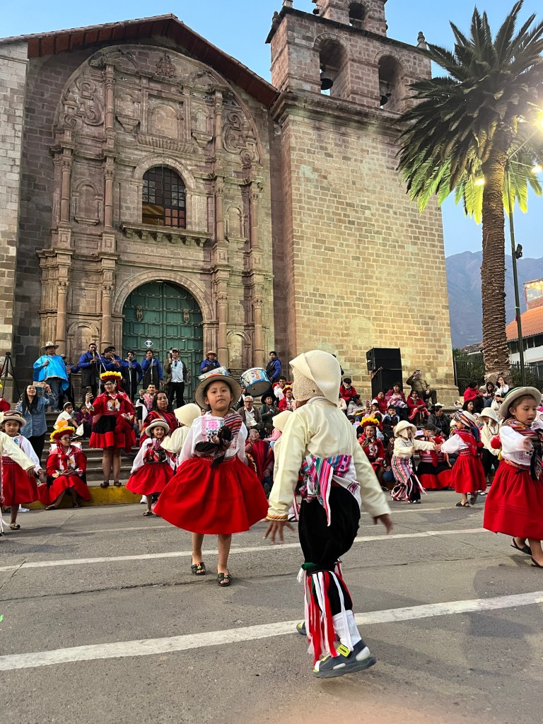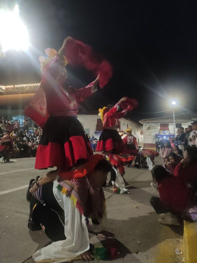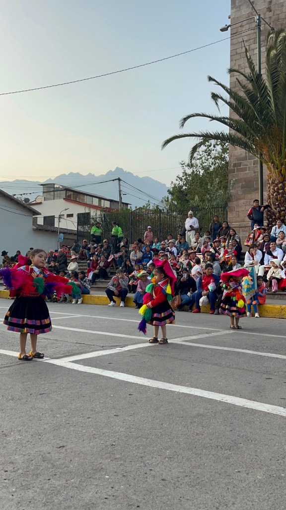 Toen we die avond rondliepen in het dorpje waar we verbleven stoten we op een startend feest op het plein. We nemen plaats op de stoep, op de eerste rij. Het bleek het schoolfeest te zijn van de plaatselijke kleuterschool ‘caramelos en sueños’ (snoepjes en dromen). En hoe kan het ook anders gevierd worden in Zuid-Amerika dan met traditionele dansen op het plein! De 3-, 4-en 5-jarigen treden op in traditionele outfits. Ik smelt helemaal weg. Maar daarna is het ook de beurt aan de ouders van elke groep! Ik verbijt de pijn over het feit dat België geen danscultuur en geen traditionele kledij heeft, want ik ben klaar om te dansen op het schoolfeest van mijn kinderen in kleurrijke kleren met alle andere mama’s en papa’s 💃🏻