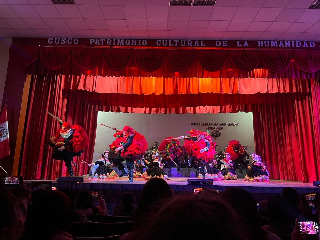 Helemaal verlicht keren we terug naar Cusco en wonen we een voorstelling bij van traditionele muziek en dans.