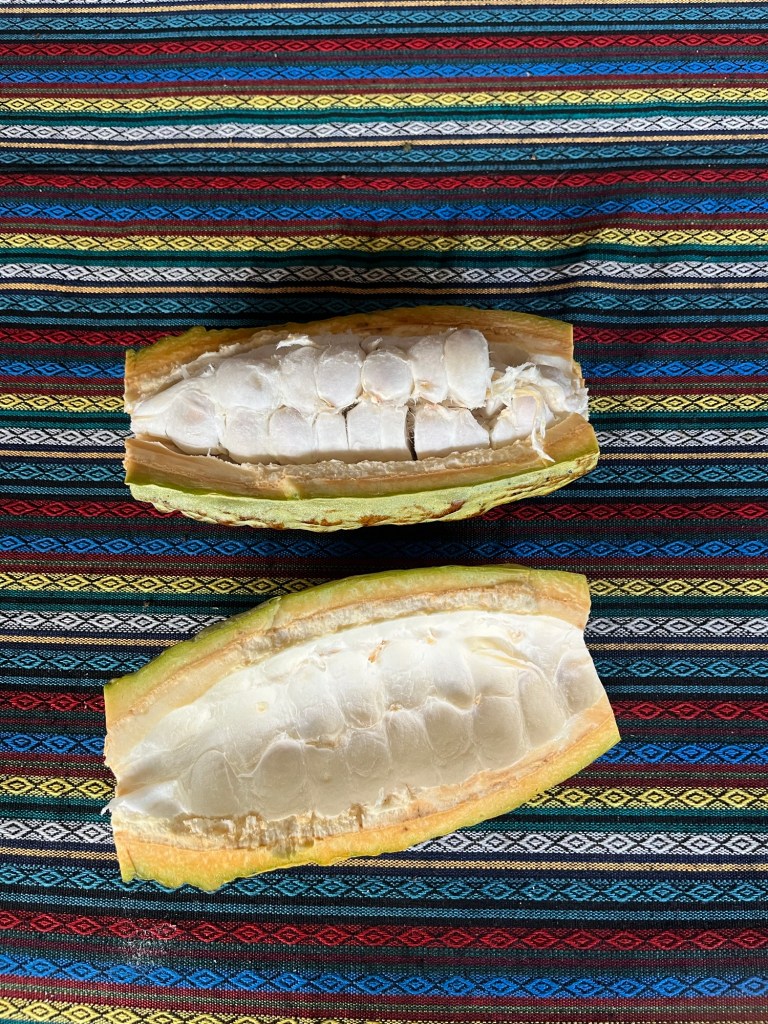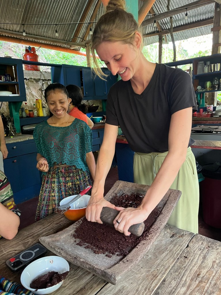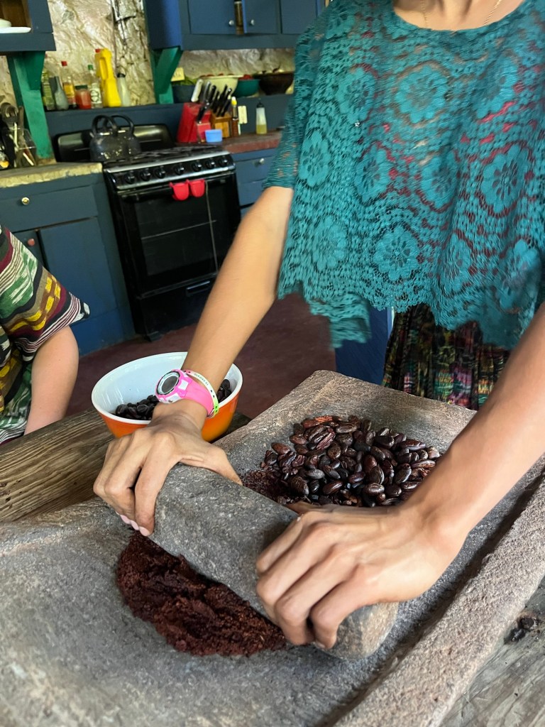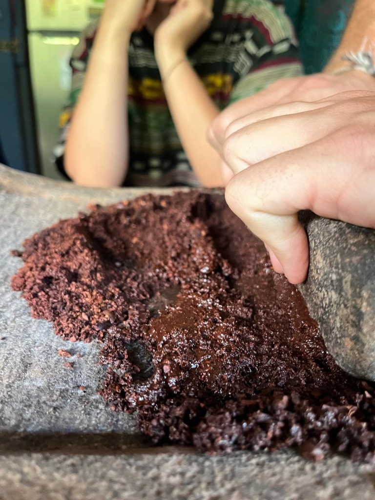 De omgeving maakt ons helemaal warm om nog eens een cacao-klas te volgen. We hebben dit ondertussen al enkele keren gedaan, maar verse chocolade maken is af en toe moeilijk te weerstaan. Eva leerde ons hoe je de bonen maalt tot chocolade met behulp van een traditionele maalsteen. Deze keer eindigden we ook echt met een chocoladereep ipv chocoladesaus of chocolademelk. Yum yum!