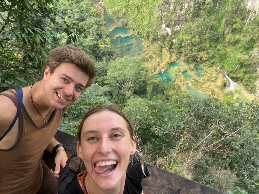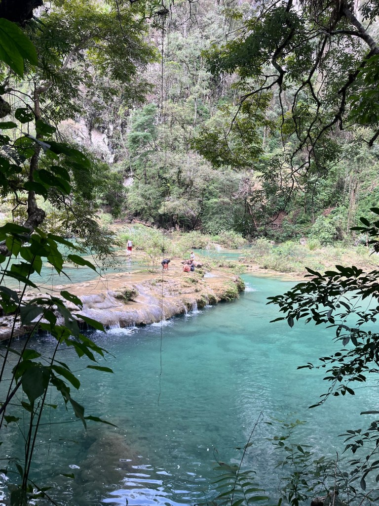Op de laatste dag was het beter weer. Hier maakten we gebruik van om ‘Semuc Champey’ te gaan bezoeken. Dit is een stukje blauwe rivier met terrassen van kalksteen.