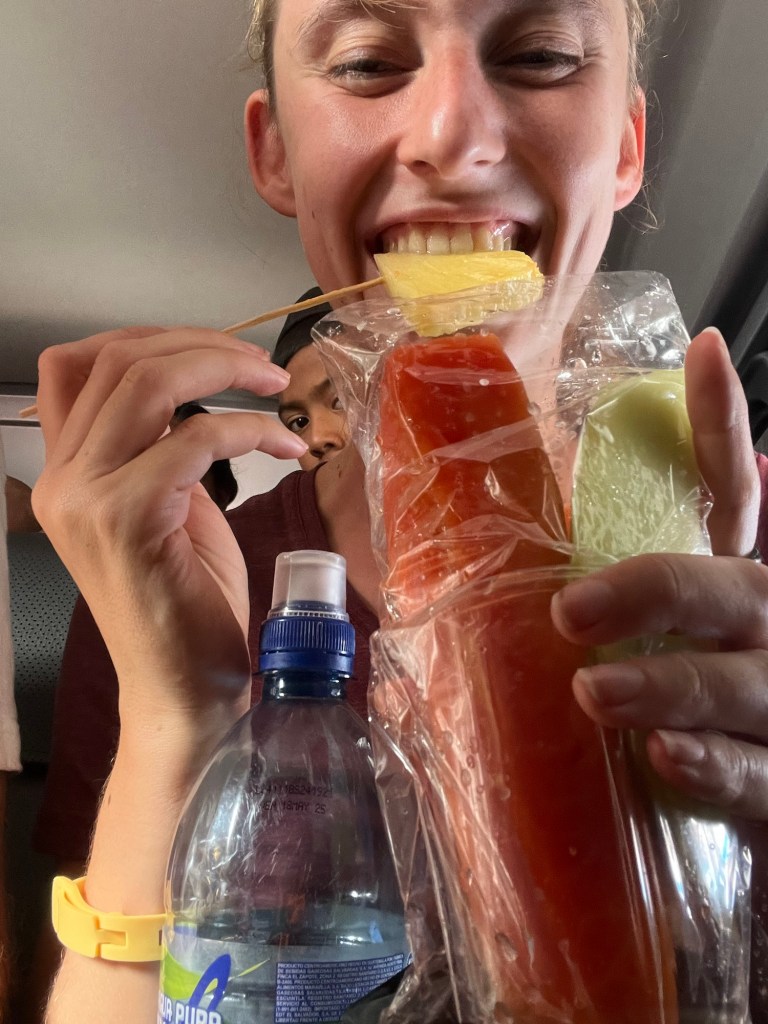 Van Tikal gingen we met lokale bussen naar Rio Dulce. Iets minder efficiënt want blijkbaar moesten we 6 verschillende busjes nemen gedurende 9u.