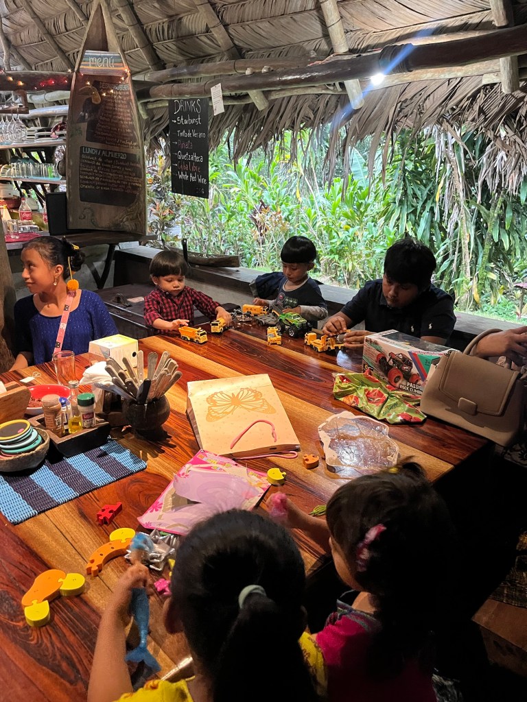 Op kerstavond was er een kerstfeest voor de staff waar we informeel voor uitgenodigd werden. Ze komen met hun families voor een kalkoen-kerstdinner en alle kinderen en medewerkers krijgen kerstcadeau’s van de eigenaar.