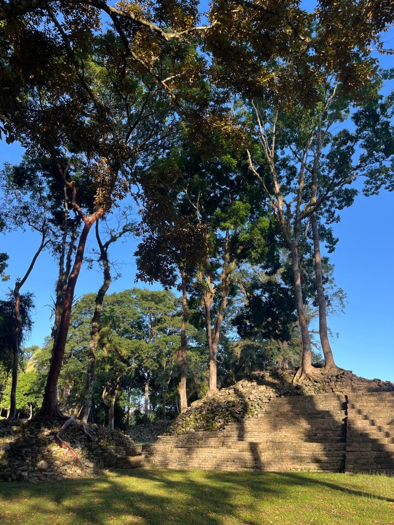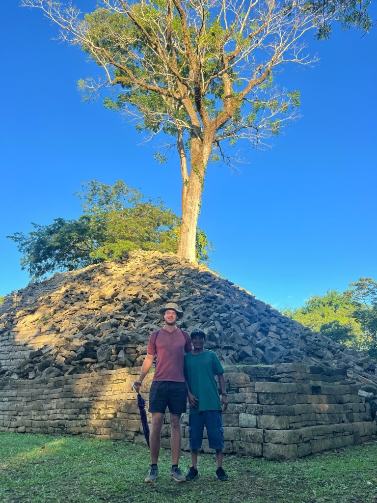 Ook bracht hij ons naar Maya-ruïnes in het kleine dorp. Dit dorp is zo onbekend, net als de ruïnes, dat ik er niet van zou verschieten als we de enige bezoekers waren deze week.