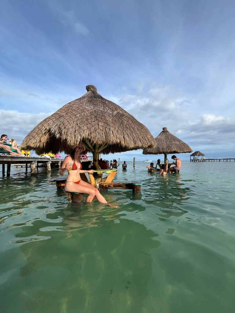 We namen een Ferry naar het eiland Caye Caulker. Dit is de meest populaire bestemming in Belize. Veel toeristen hier bezoeken zelfs enkel dit eiland, zonder op het vaste land te komen. Het is een chill eilandje met hippe barretjes aan en in het water, en veel snorkel en duikmogelijkheden.