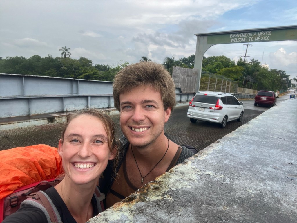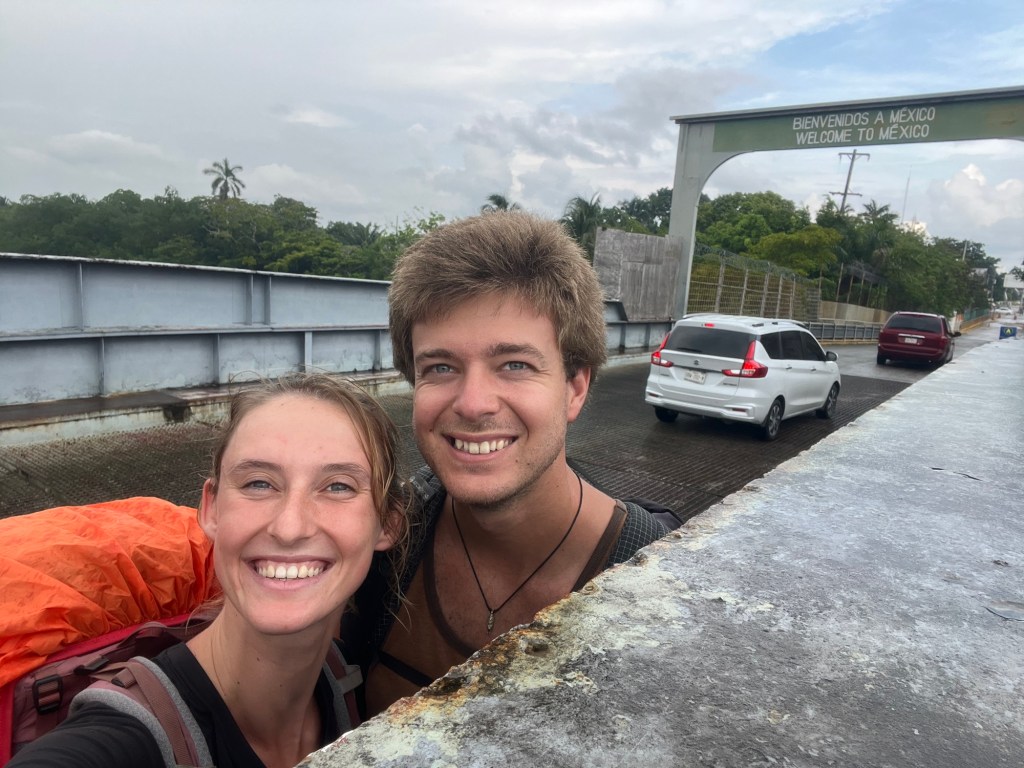 Het voelde raar om op de brug te staan op de grens tussen Belize en Mexico. Dit is de laatste grensoversteek van onze reis!