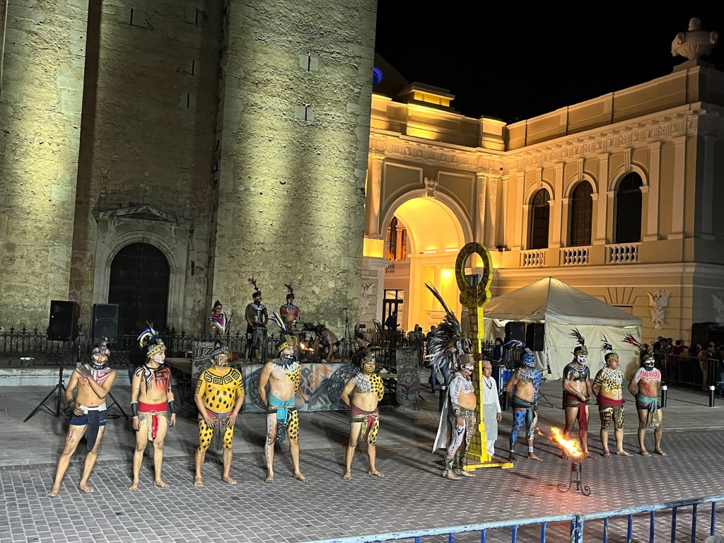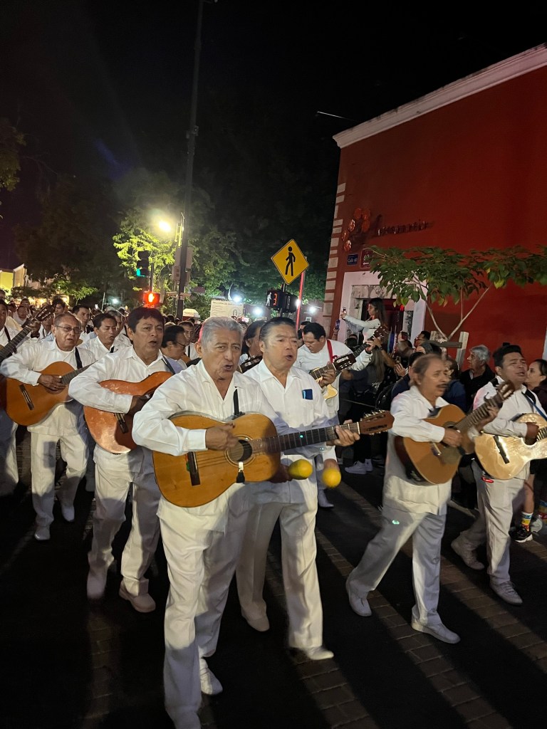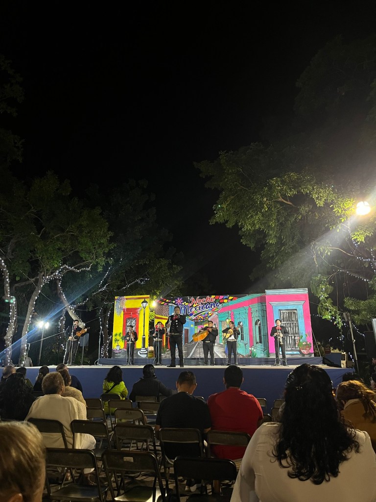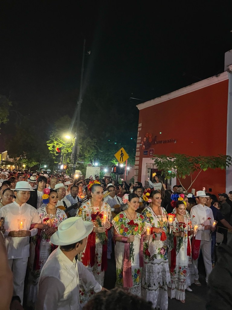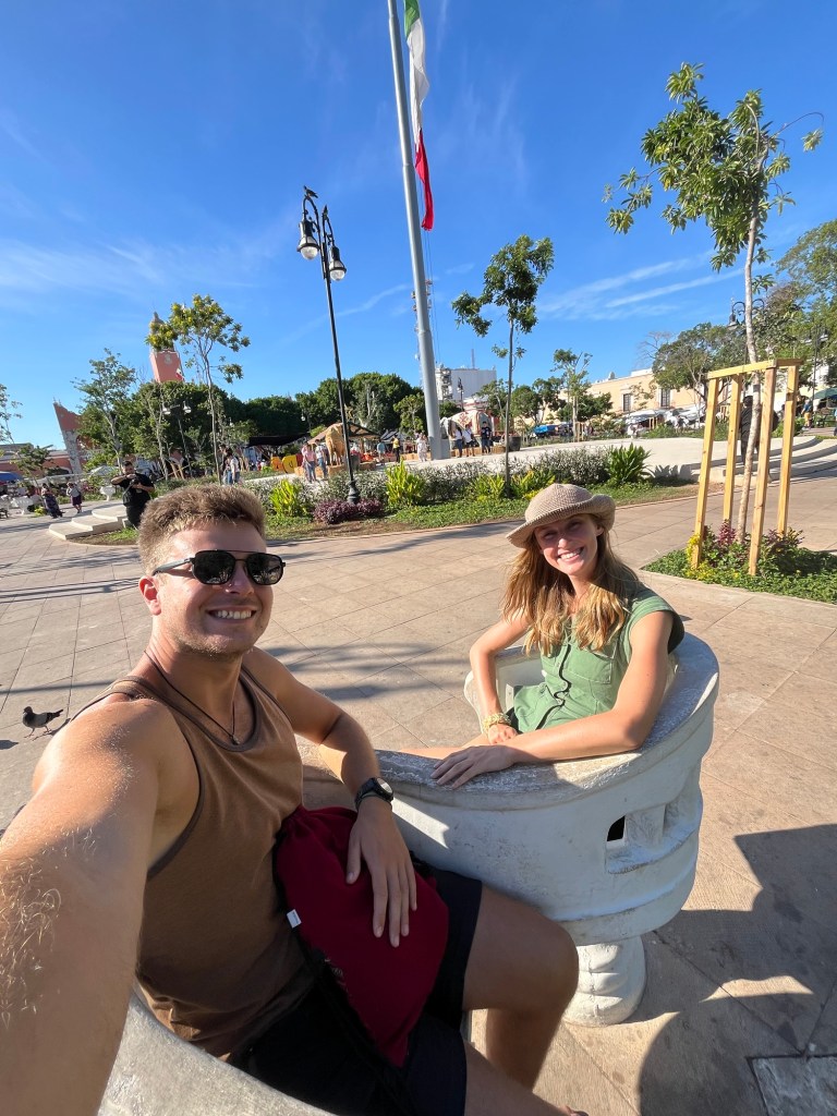 Volgende locatie was Merida: de culturele hoofdstad van Yucatan. We waren op het juiste moment gekomen want er waren veel dingen gaande wegens de 483e verjaardag van de stad. Er was live muziek, veel mensen in traditionele kleren en dans. Ook was er een reconstructie van het oude Maya spel poktapok. Dit spel werd gespeeld met een rubberen bal die door een ring moest botsen zonder ledematen te gebruiken. Het was meer dan een spel voor de oude Mayavolkeren; het kon soms dagen duren en volgens legende werd de kapitein van het verliezende team onthoofd.