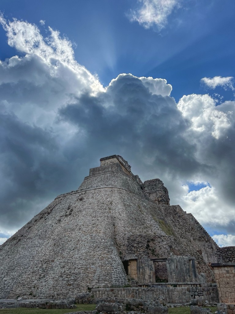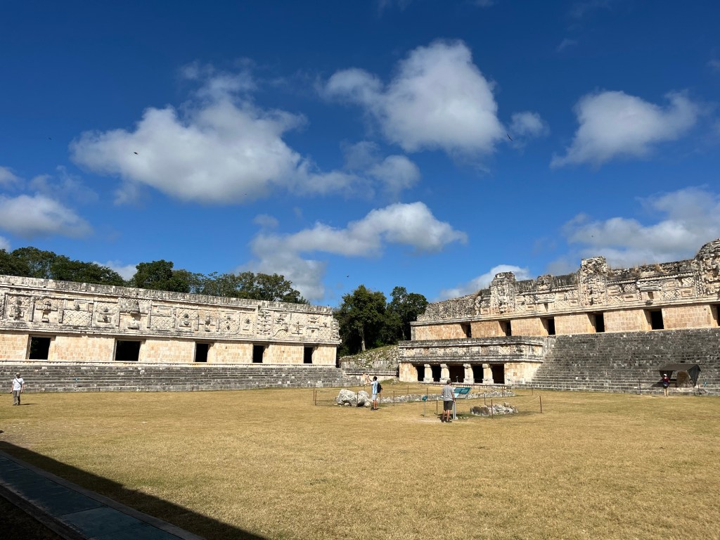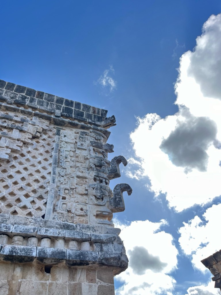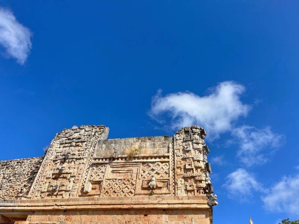 Ook bezochten we de Maya ruines Uxmal. Deze staat bekend voor zijn mooie carvings in de muren. De pyramide is volgens de legende gebouwd in één nacht door een dwerg die geboren is uit een ei. Waar of niet, het resultaat mag er zijn!
