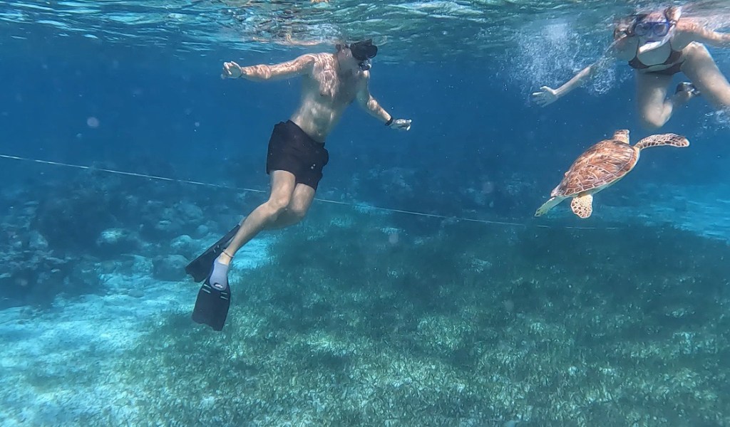 Op de laatste dag van 2024 gingen we op een snorkeltour met als doel zeekoeien te spotten, en bij stop 1 was het al meteen van dat. Het beest was wel passiever dan we dachten; Het ligt gewoon wat te zweven en te kakken.