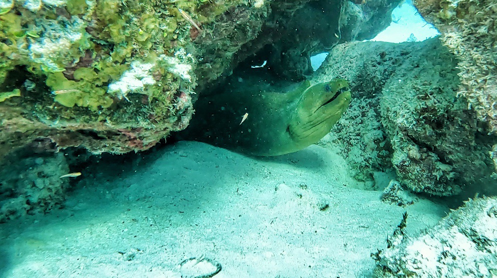 Voor de rest zagen we ook veel nurse sharks, enkele sting rays, een schildpadje, een aal, een heel klein zeesterretje, vele vissen en koraal.