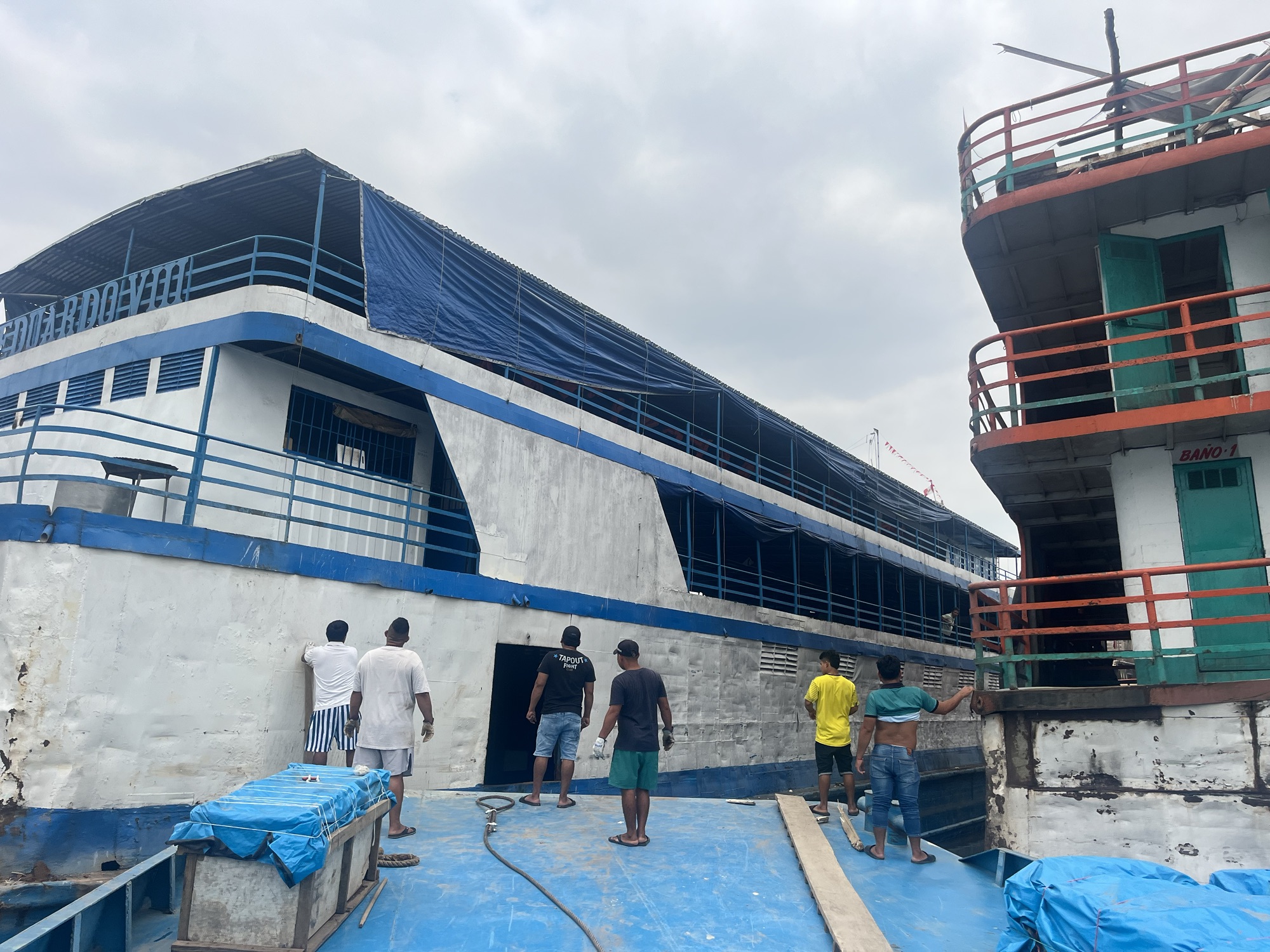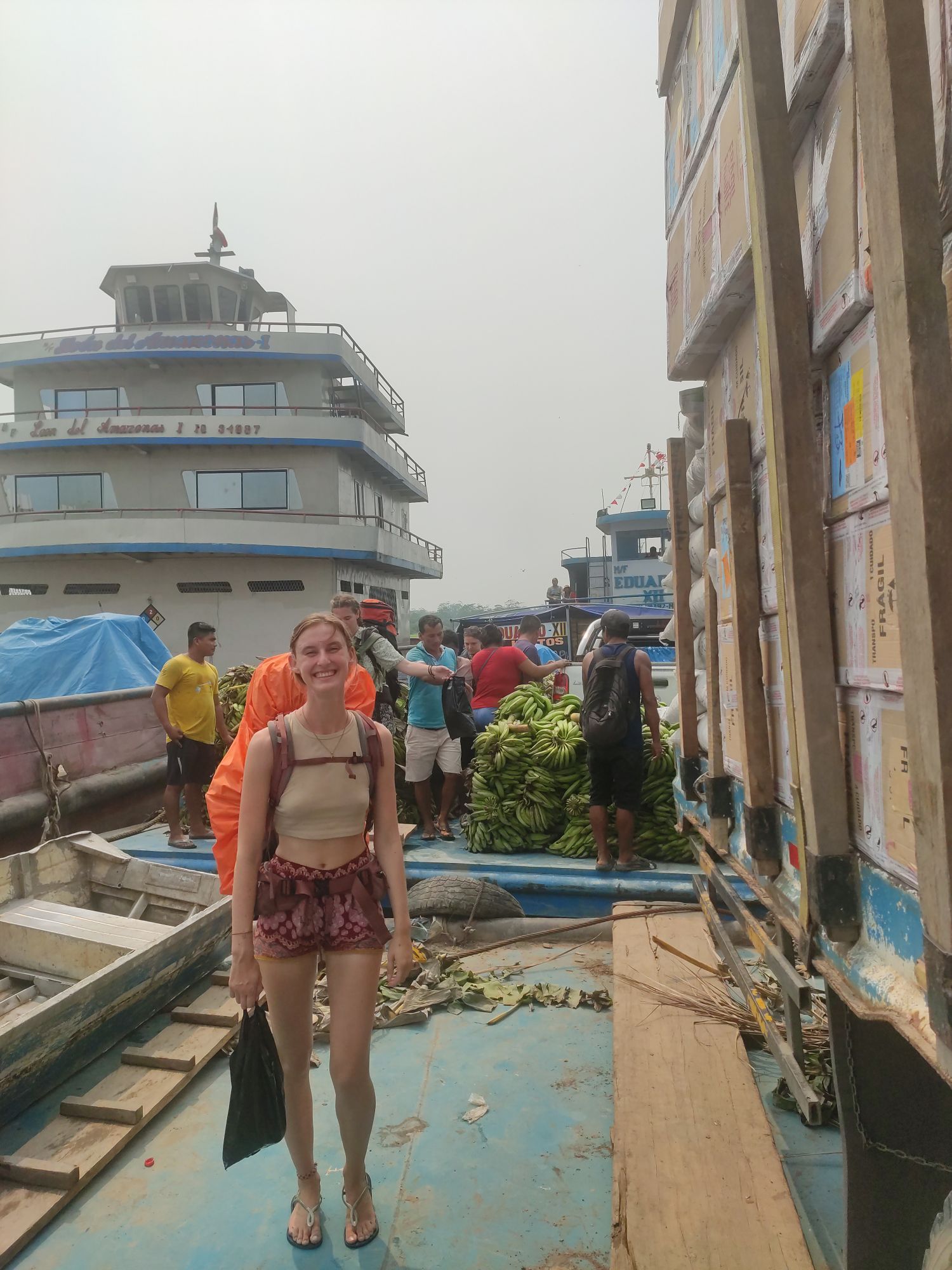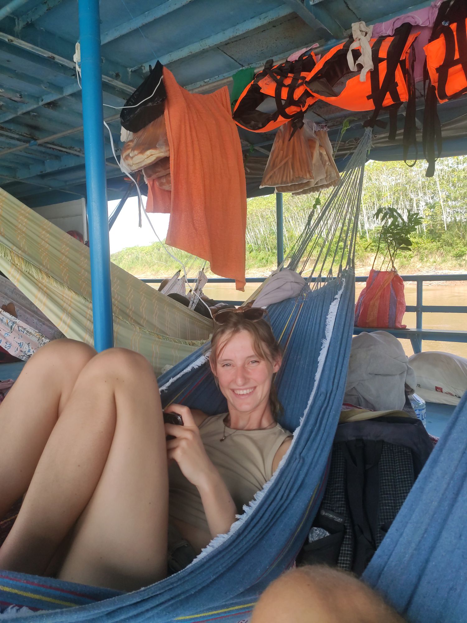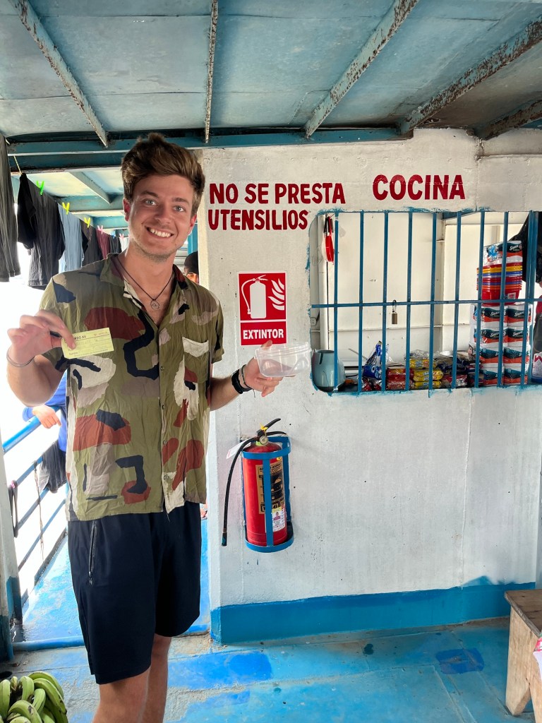 De volgende ochtend keren we terug naar de haven en het is veel drukker. Er zijn veel nieuwe schepen bijgekomen waaronder de Eduardo XII, dat is de boot waar we uiteindelijk op zijn beland. ‘s Middags installeerden we onze hangmat en dan begon het wachten. Ons werd verteld dat we de volgende dag zouden vertrekken. Op de boot zaten ook twee andere toeristen uit Zwitserland, en hun werd verteld dat we vandaag zouden vertrekken. Niemand wist dus eigenlijk iets.