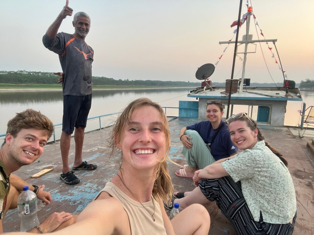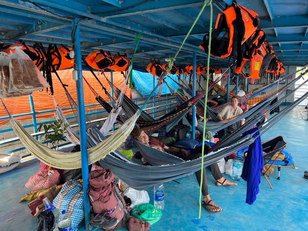 De eerste nacht op de boot was luid, vochtig en kort. Een luide generator op de boot naast ons draaide de hele nacht lang en het was zo vochtig dat condensatie naar beneden druppelde van het dak. Maar je kiest niet bepaald voor dit vervoer voor comfort.
