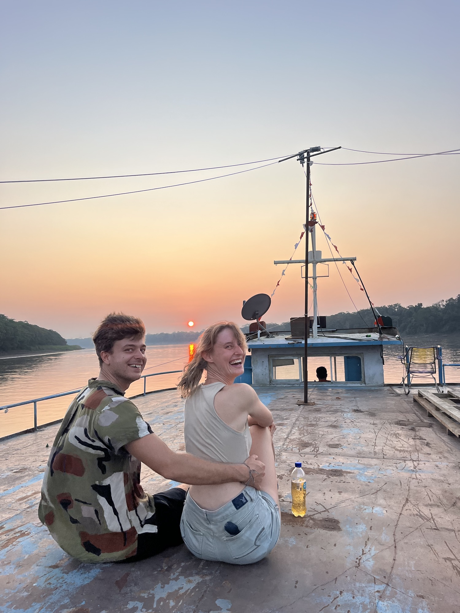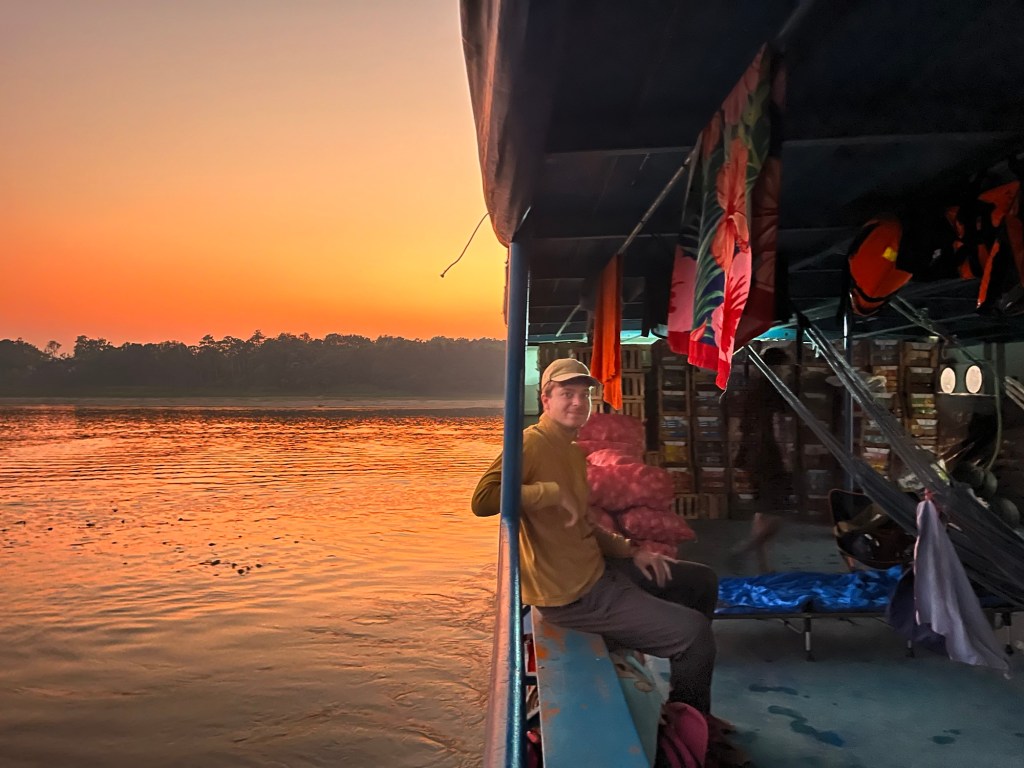 Ik denk dat ik nog nooit zo opgelucht was toen de boot eindelijk vertok rond 6u, want voor hetzelfde geld zaten we er nog een dag. Met de opkomende zon verdwenen de lichtjes van Yurimaguas eindelijk in de verte.