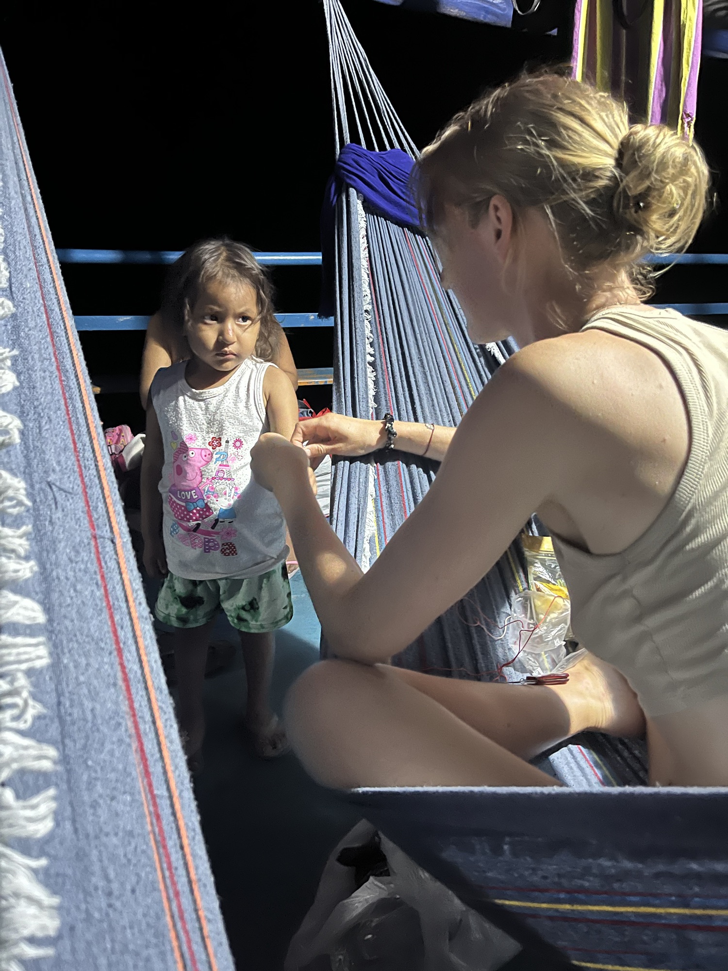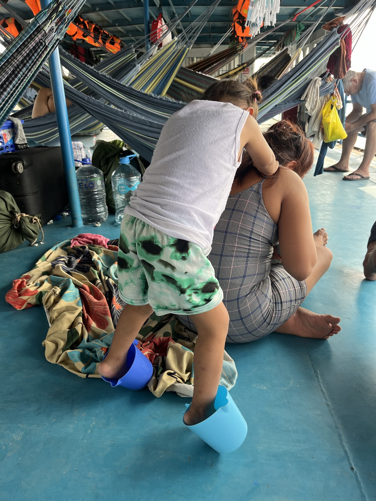 We leerden een moeder kennen van 17 jaar met haar schattig dochtertje, Sofia, van 2 jaar en de vader van 21. Ze slapen op de grond onder onze hangmatten, zonder matras en enkel een dekentje. Naast ons verbleef een ouder koppel dat nooit praatte. De man had als kostbaarste bezit een radiootje dat hij zonder schaamte vaak diep in de nacht aanzette om muziek te luisteren.