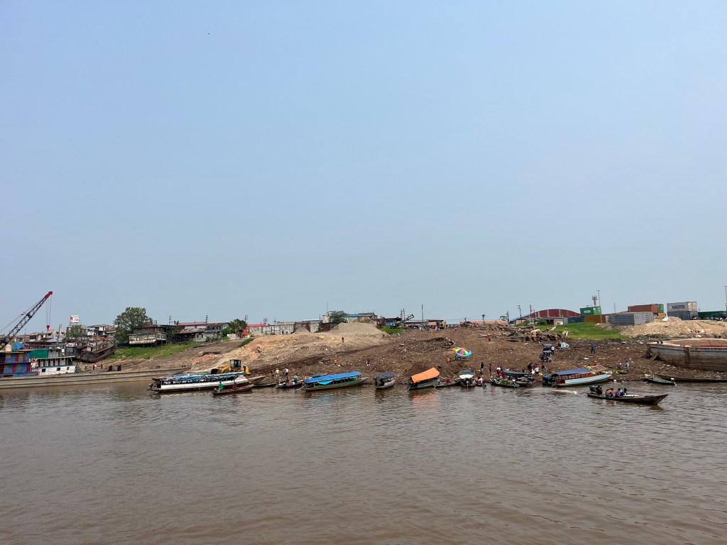 Het verhaal begint maandag in Yurimaguas, waar we in de namiddag arriveerden met een minibus. In dit stadje is het einde van de weg en dus hier begon de zoektocht naar een boot die ons naar Iquitos zou brengen. Deze vrachtschepen vertrekken wanneer ze vol zijn geladen, niet volgens een schema en vaak met vertraging. De eerste avond wandelden we dus naar de haven (dat letterlijk gewoon een zandbank is) om eens rond te horen.
