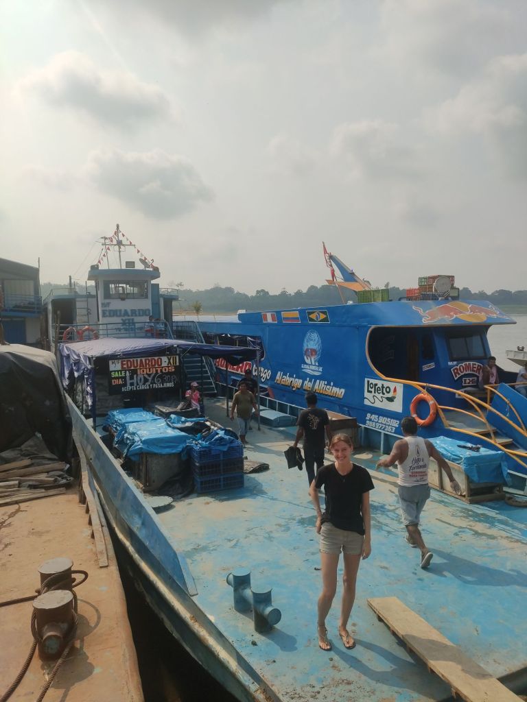 Iquitos is een stad in het noorden van Peru, diep in het amazonewoud. Het is de grootste stad ter wereld die niet via een weg bereikbaar is, enkel met het vliegtuig of een boot via de amazonerivier. Wij kozen voor de boot. We hadden maanden geleden als tip tehoren gekregen, dat het mogelijk is om deze tocht te doen op een vrachtschip. Deze duurt enkele dagen en je slaapt in een hangmat op het dek, dat klinkt als een avontuur!